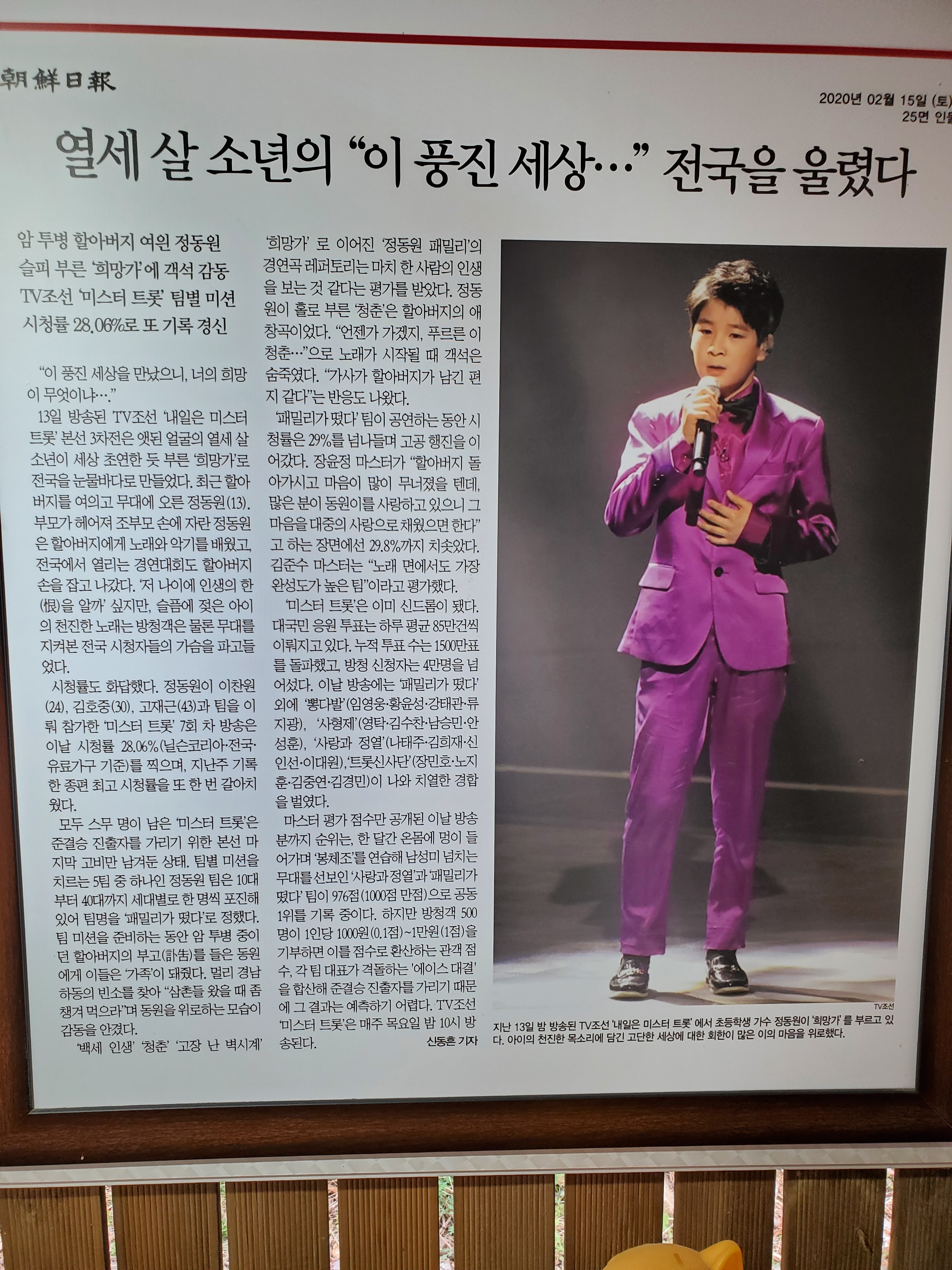 그렇게 고 정윤재 씨는 정동원이라는 걸출한 트롯 스타를 대중에게 선물하고 세상을 떠났다. 이제 정동원 군에