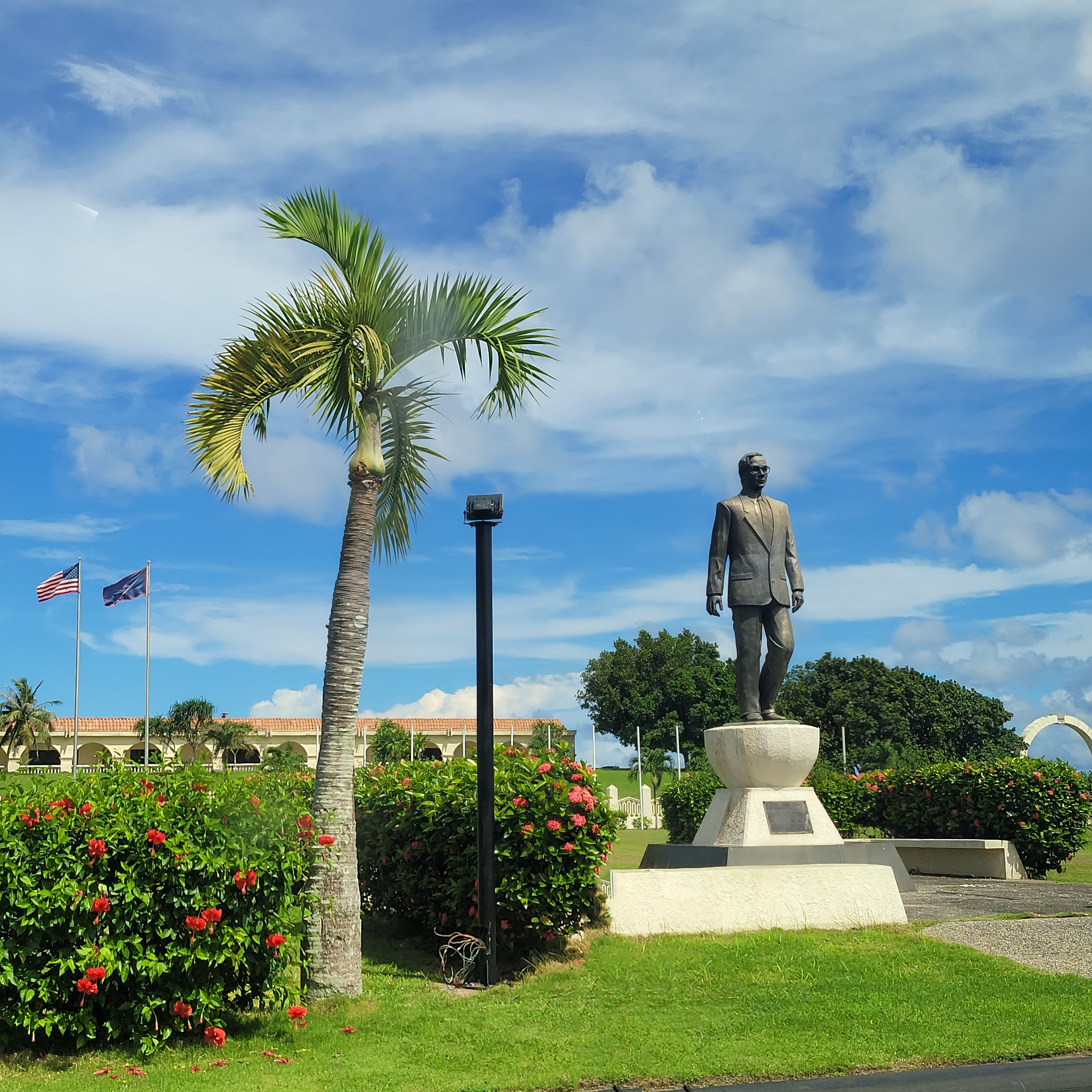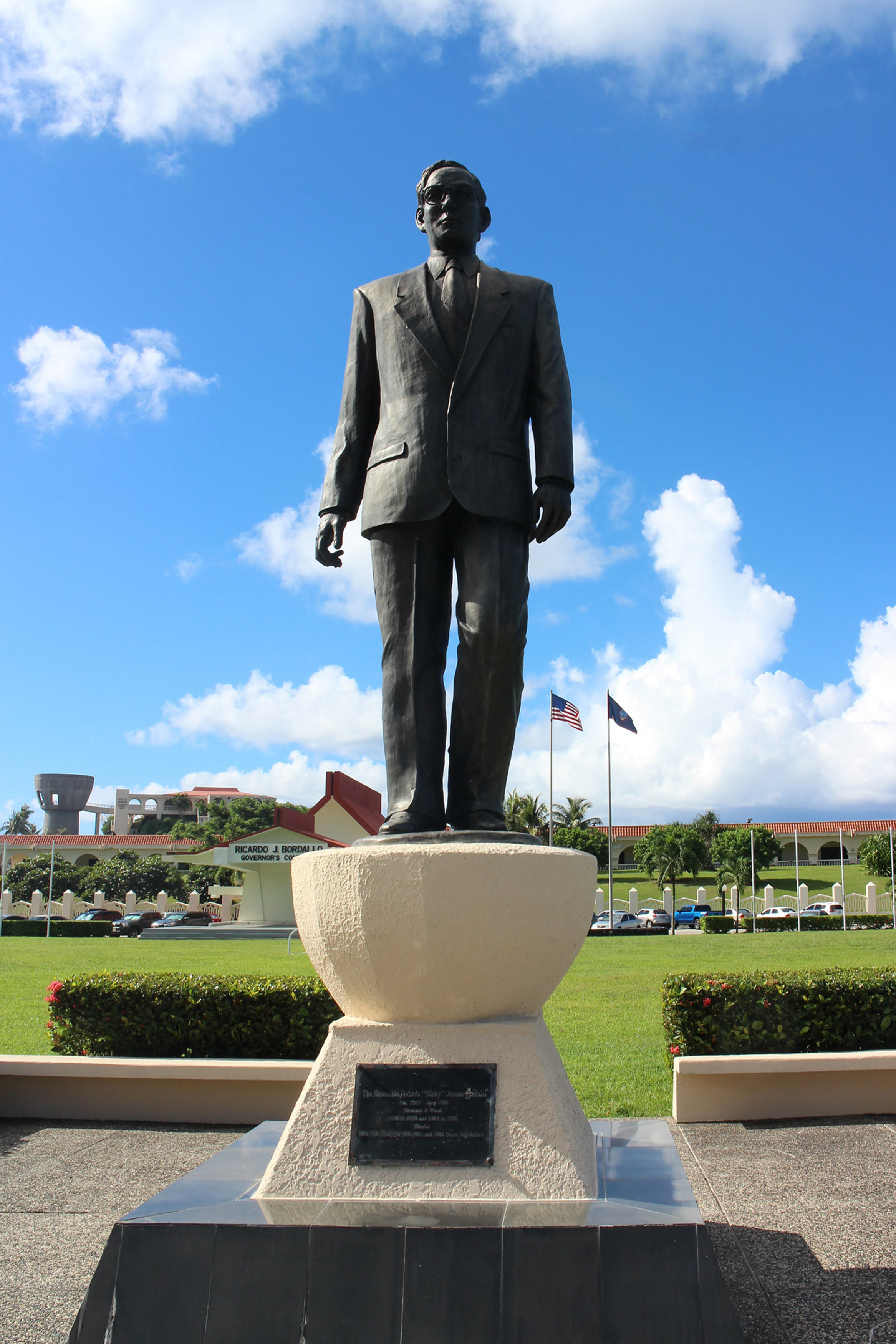 *청사 앞마당에 세워진 초대 주지사의 동상. :주지사는 괌 주민들 가운데서 선출되며, 괌 주민들은 미국의 준시