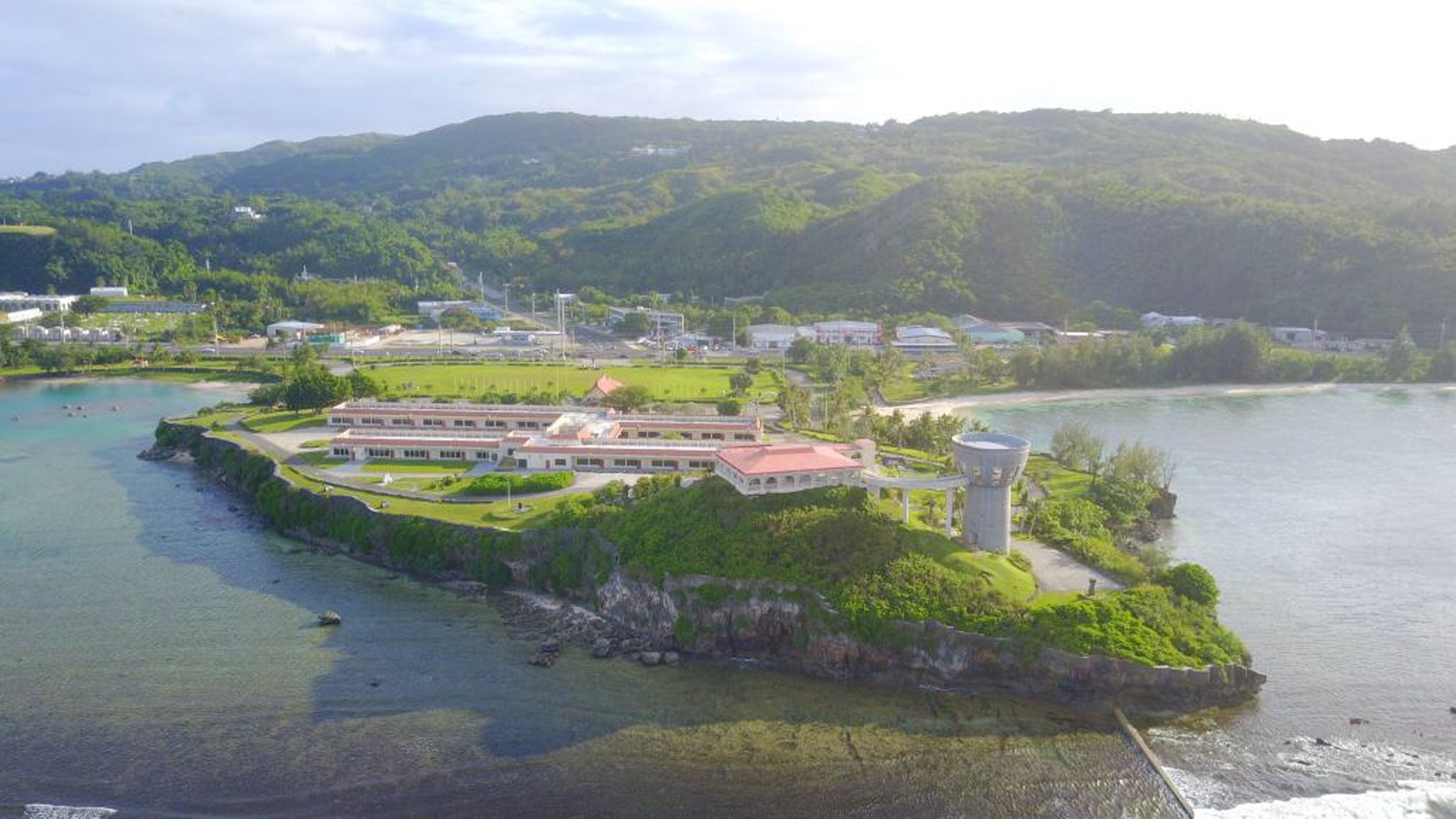 *괌 정부종합청사는 관공서이긴 하 지만, 청사 주변에 푸른 바다, 코코넛 나무, 해변 등이 어우러져 마치 공원
