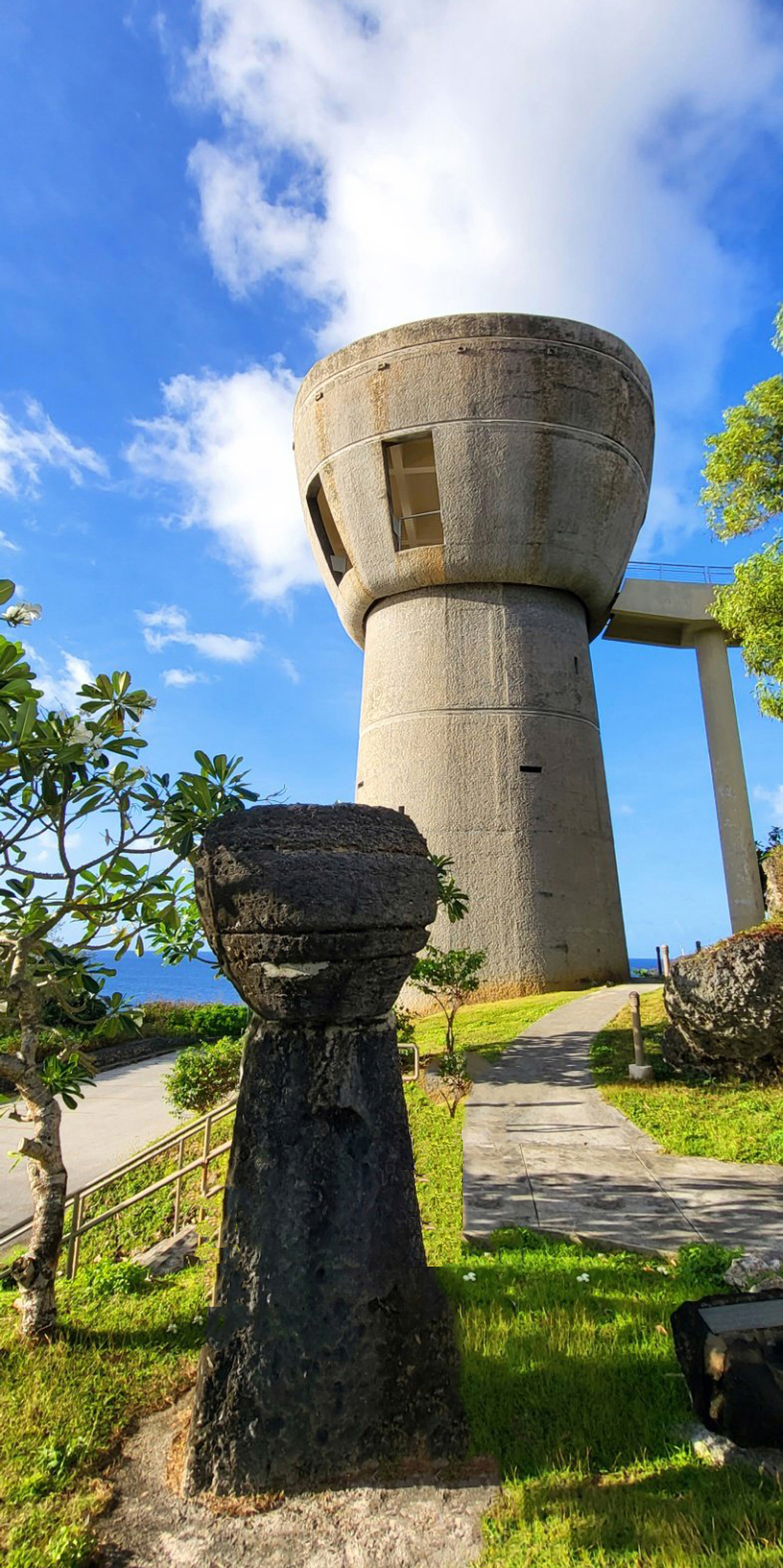 내부에서 연결되는 라테스톤 모양의 전망대에 올라 아델럽 포인트에서 아름다운 서태평양 바다를 보려고 했으