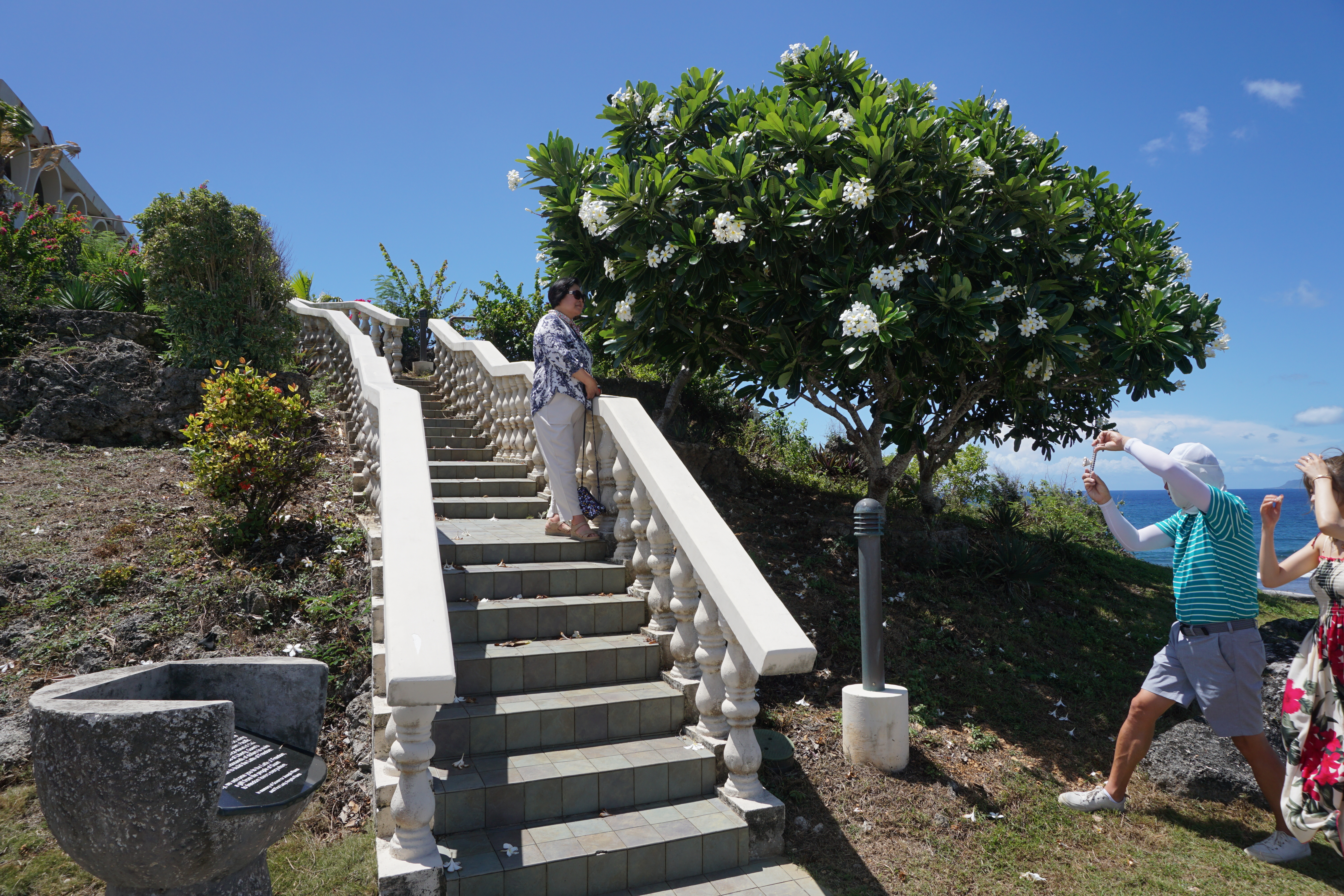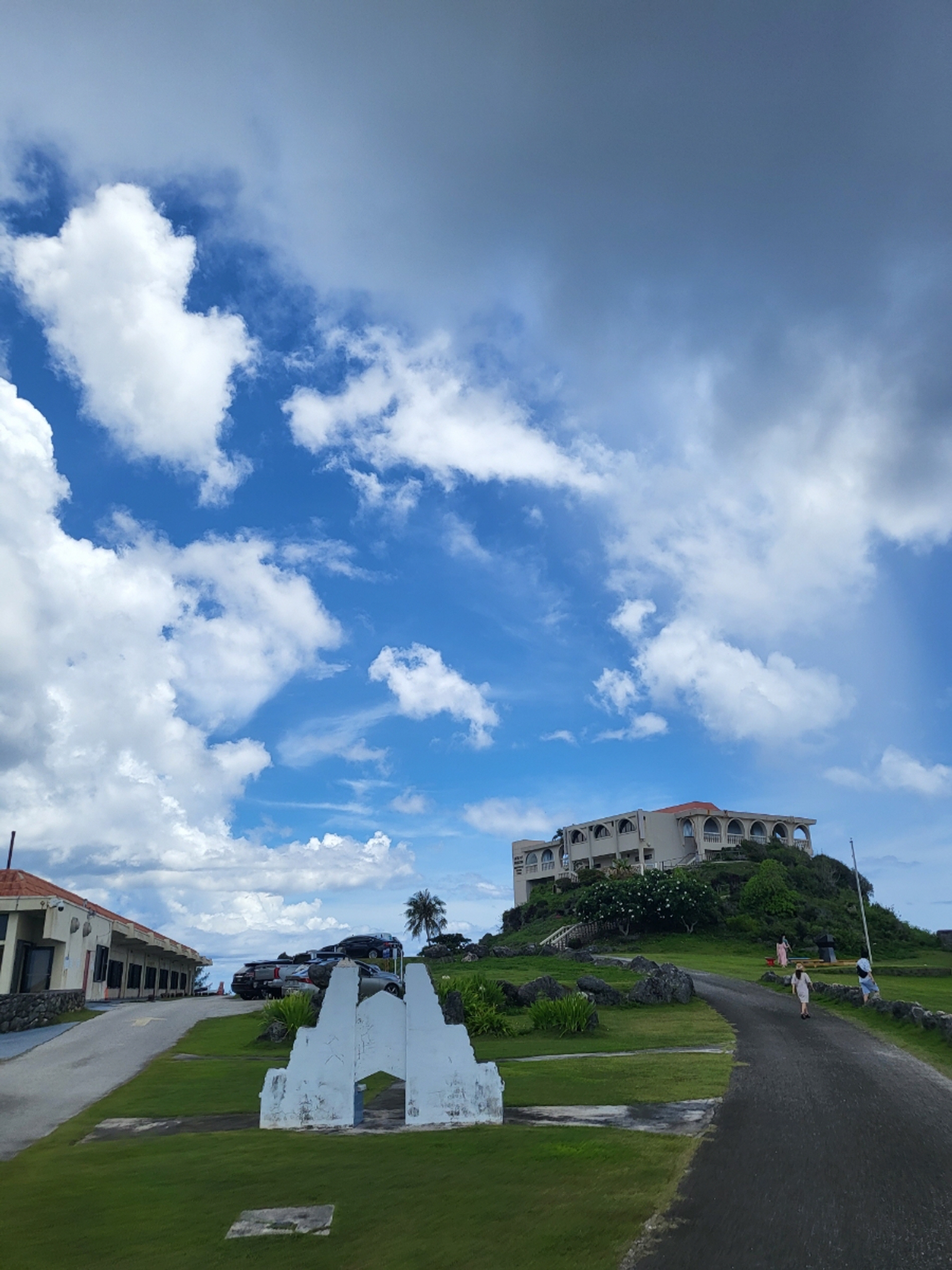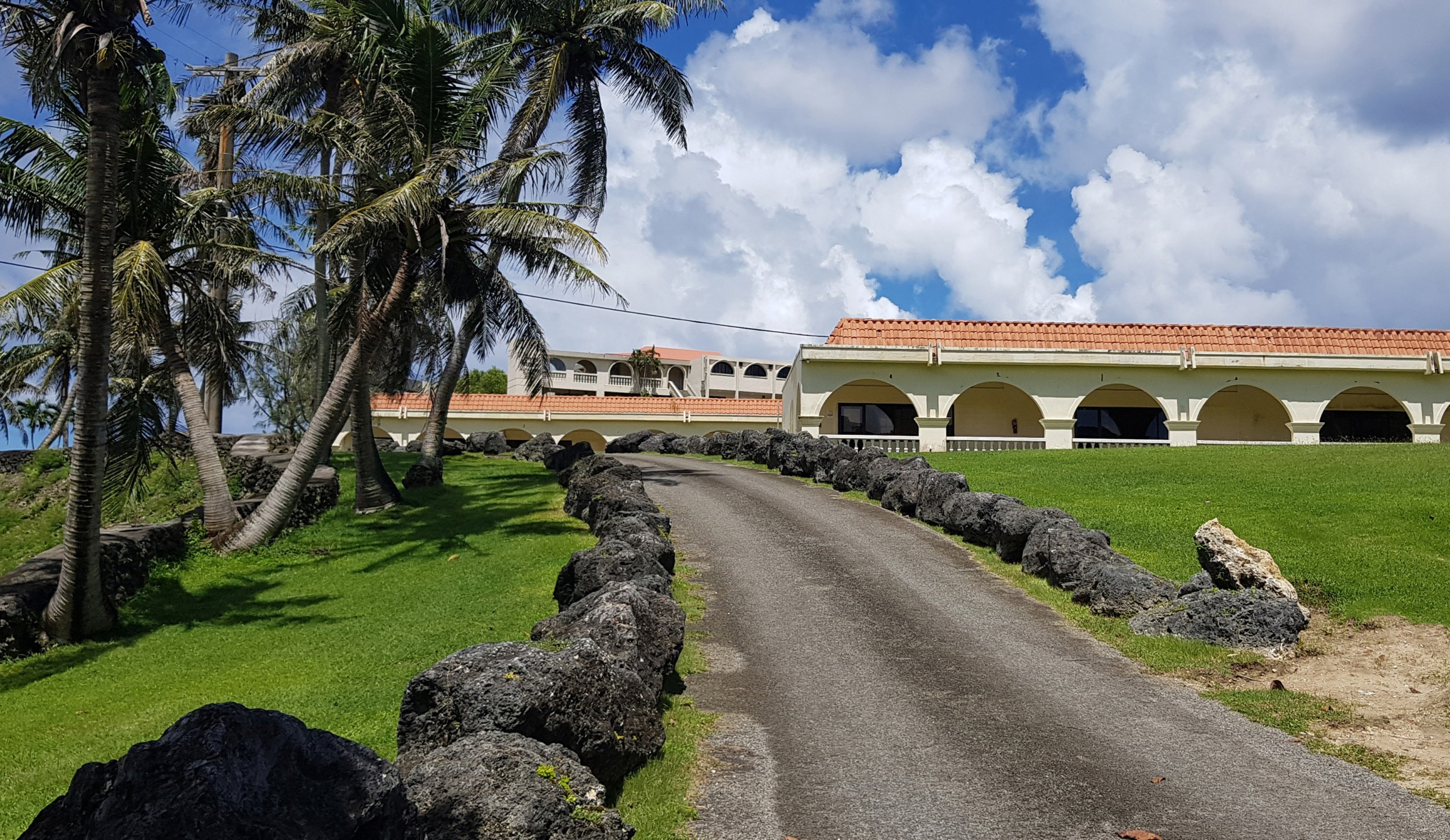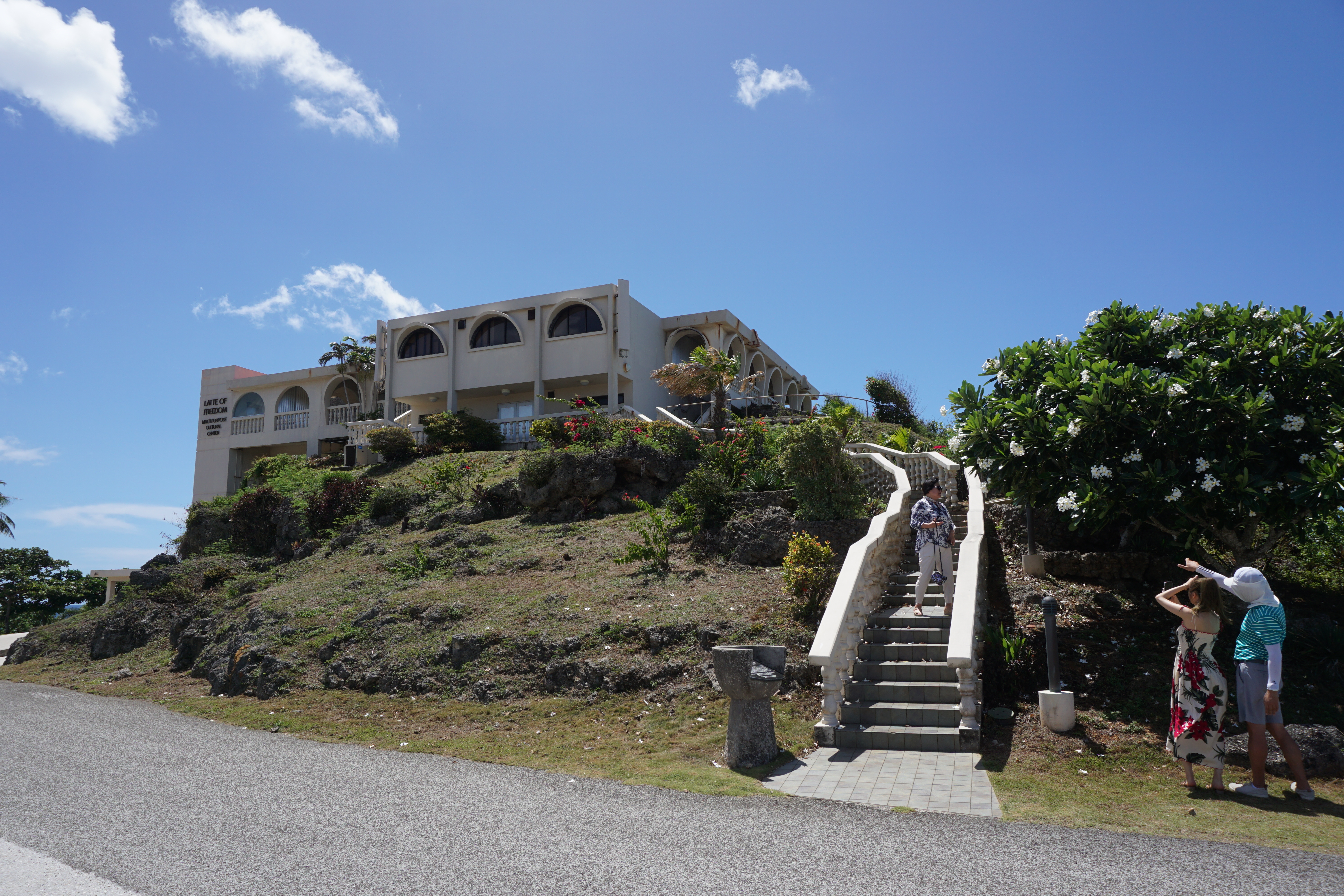 *괌 정부종합청사로 향하는 길. 푸른 언덕 위에 스페인 건축 양식이 무척이나 인상적. 상아색의 섬세한 계단도
