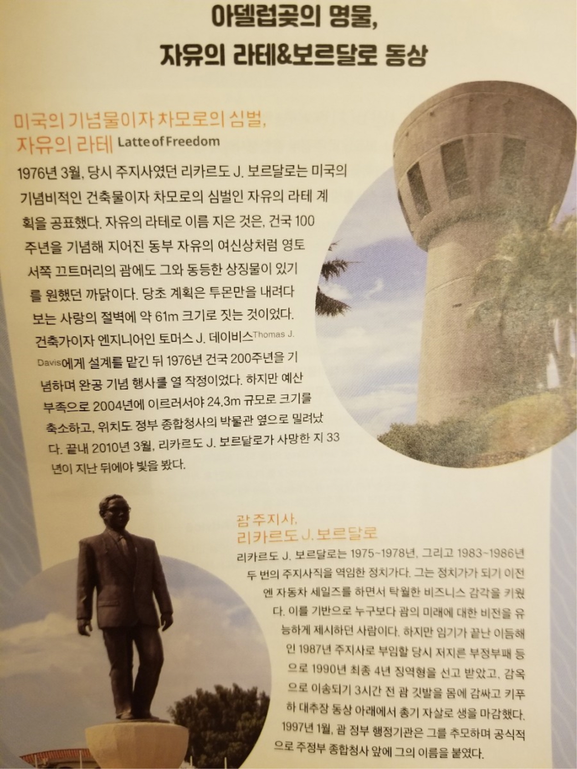 이후 괌의 미래에 대한 비전을 제시한 훌륭한 지도자였던 주지사 리카르도 J. 보르달로(1975~1978, ,4대재임:1983