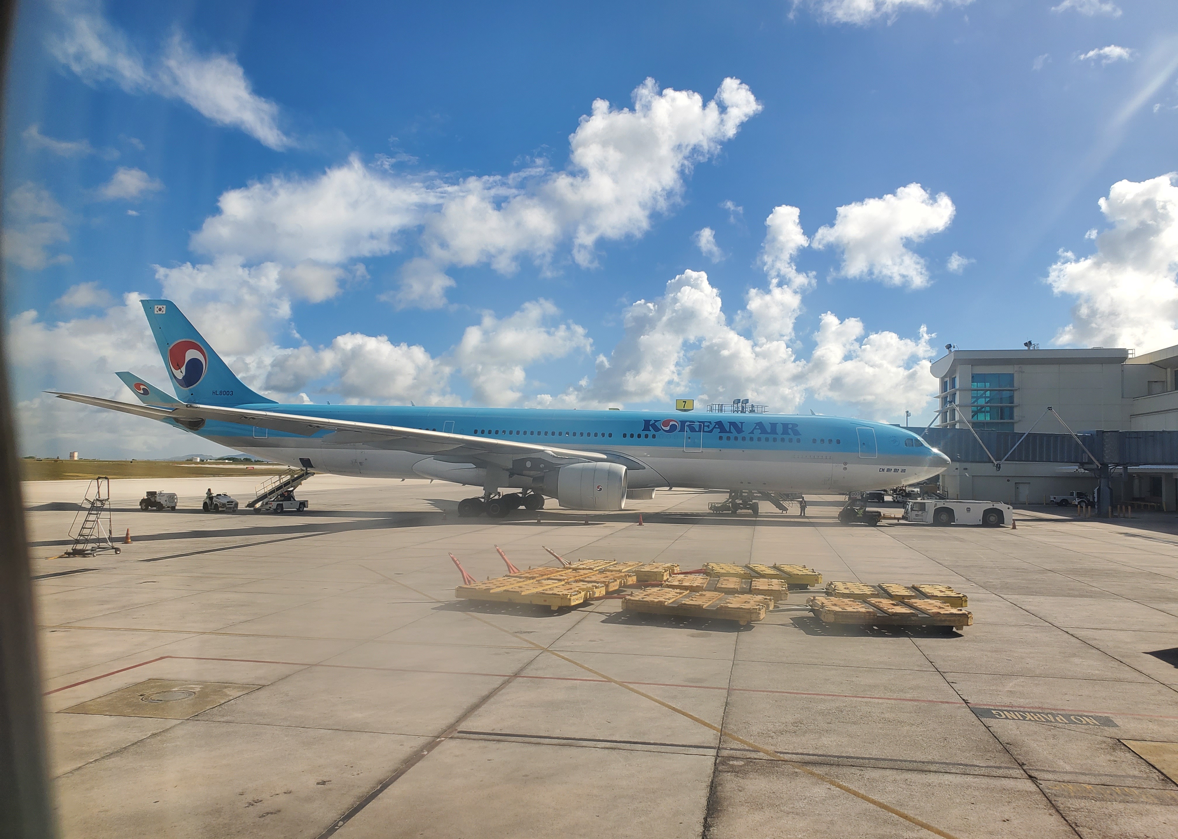 *한국에서 괌으로 출발은 06시20분발 올 때는 괌에서 인천공항으로 16시 30분발 비행기. 비교적 저가 항공기