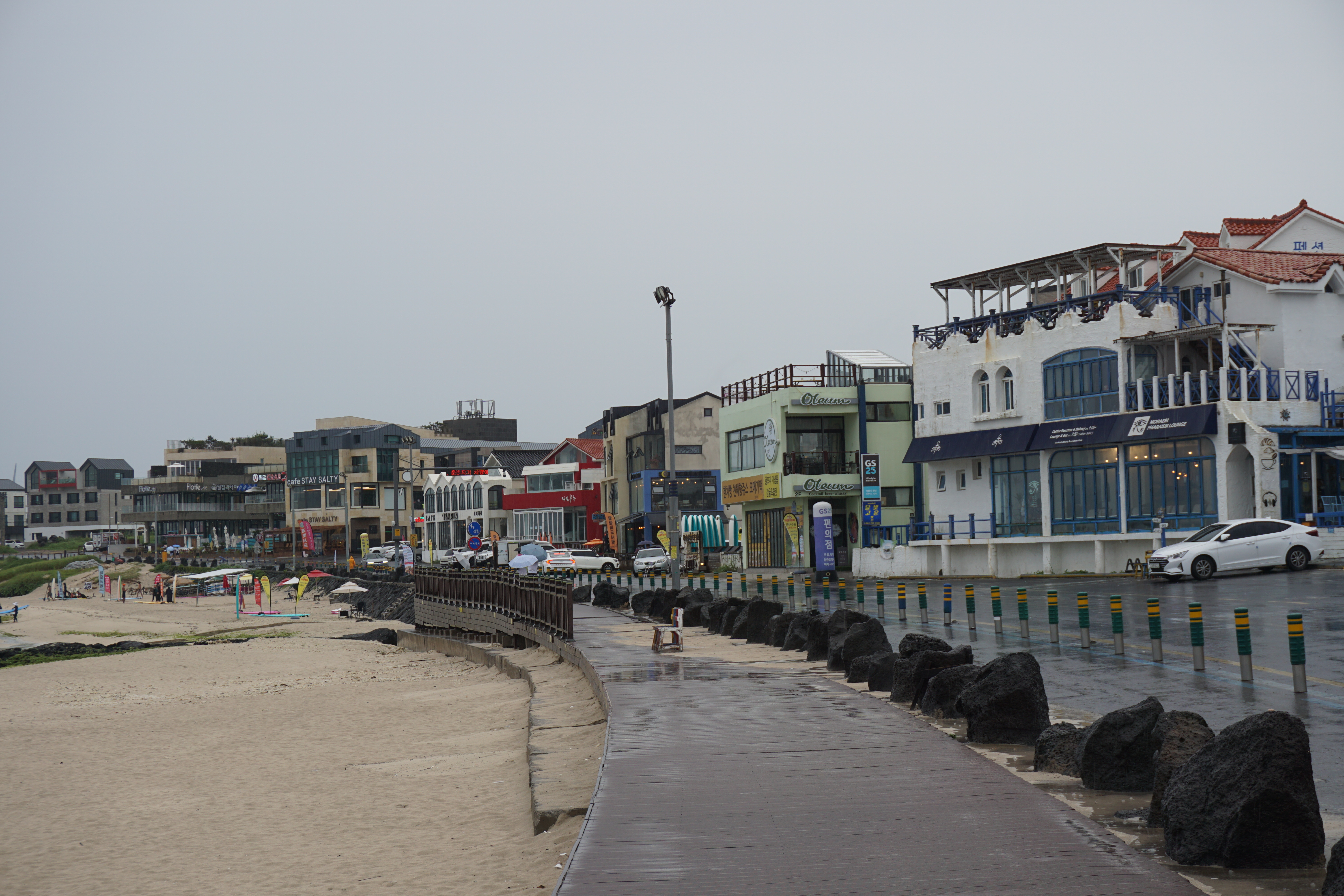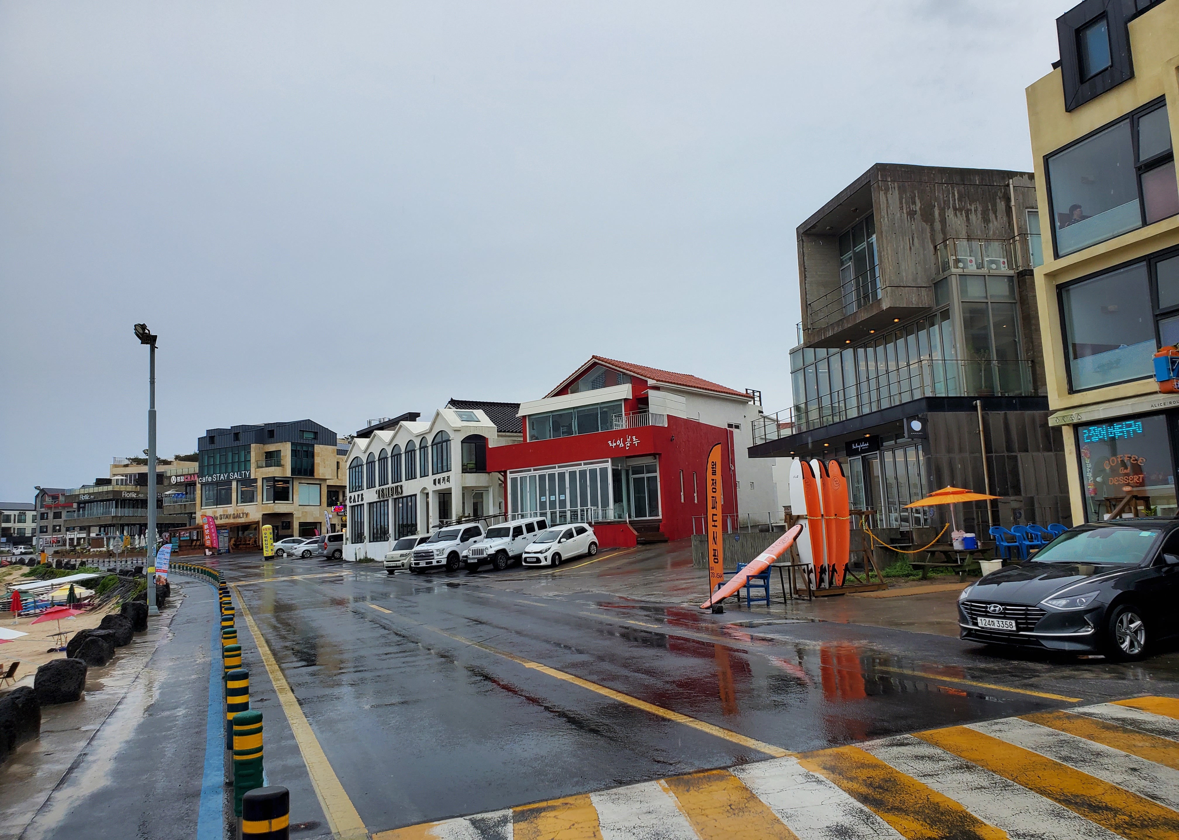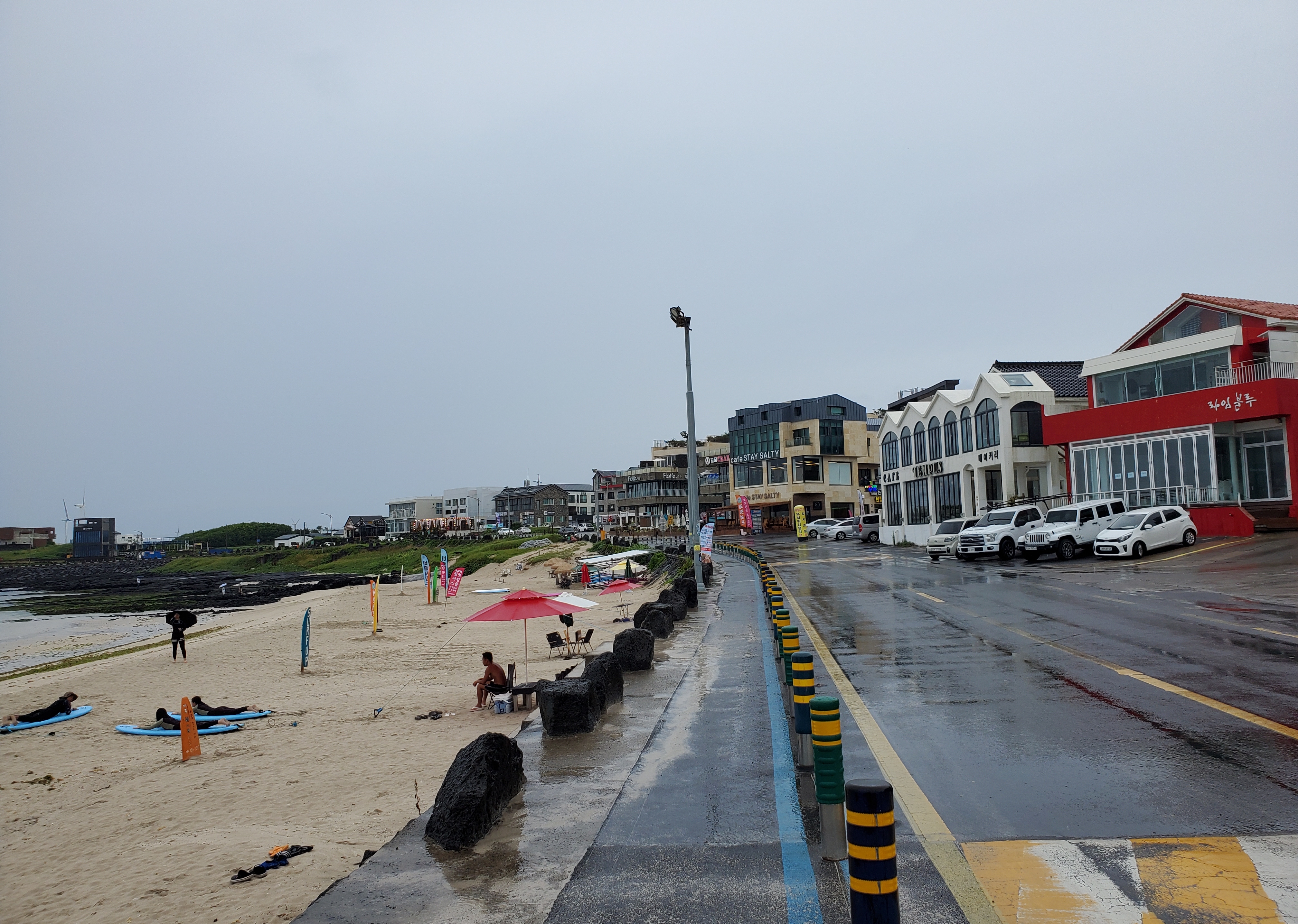 에서는 비가 오는데도 불구하고 바다를 즐기려는 젊은 청춘들이 있었다, 역시 젊음이란 좋은 것이다. 길 한켠에