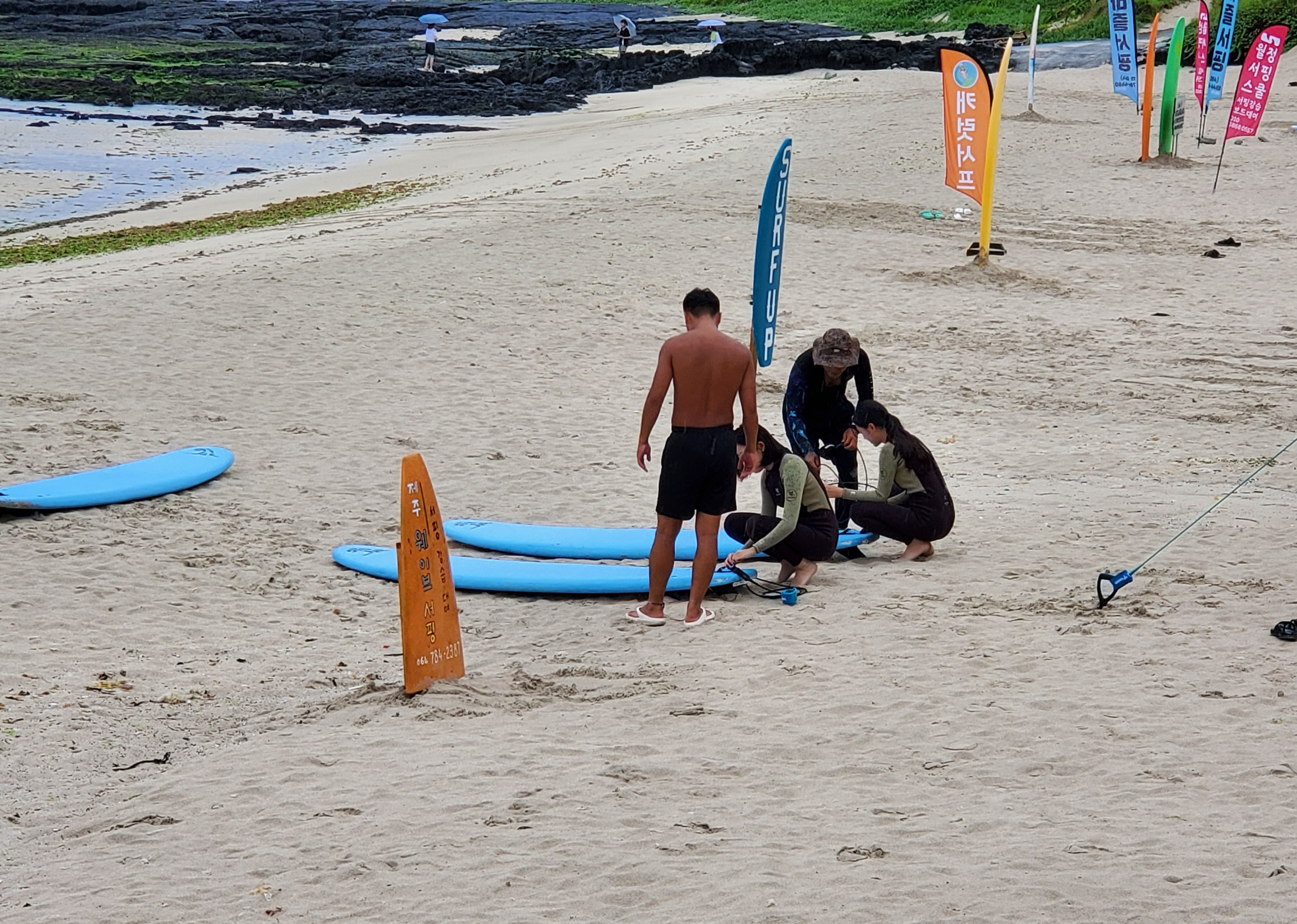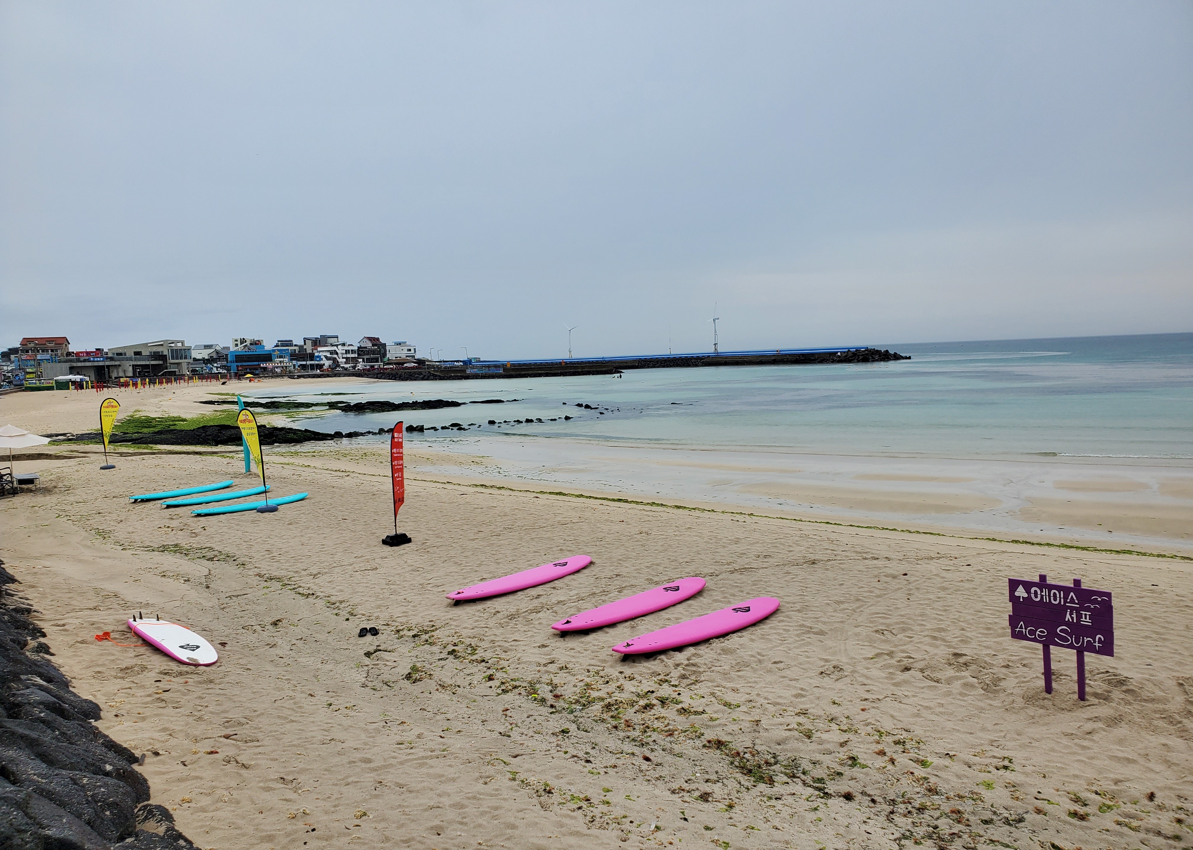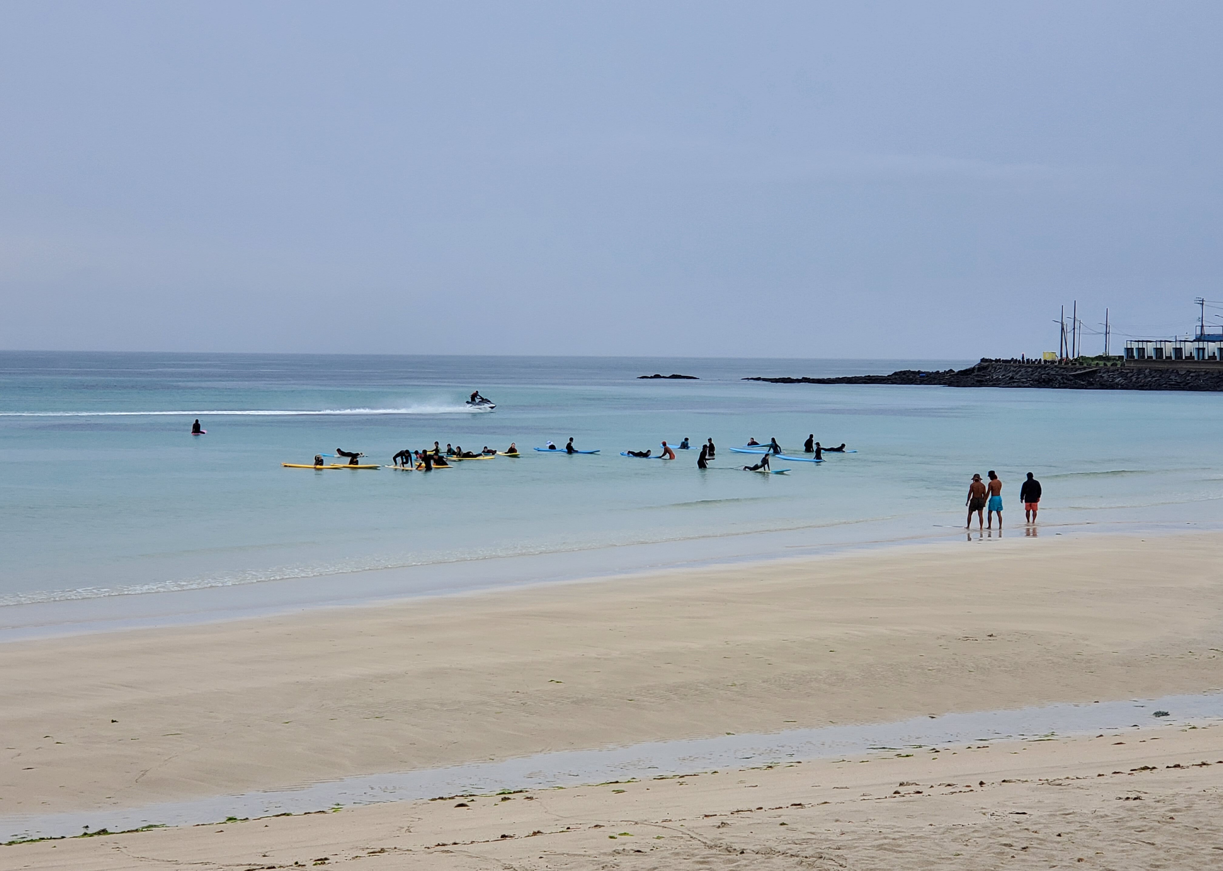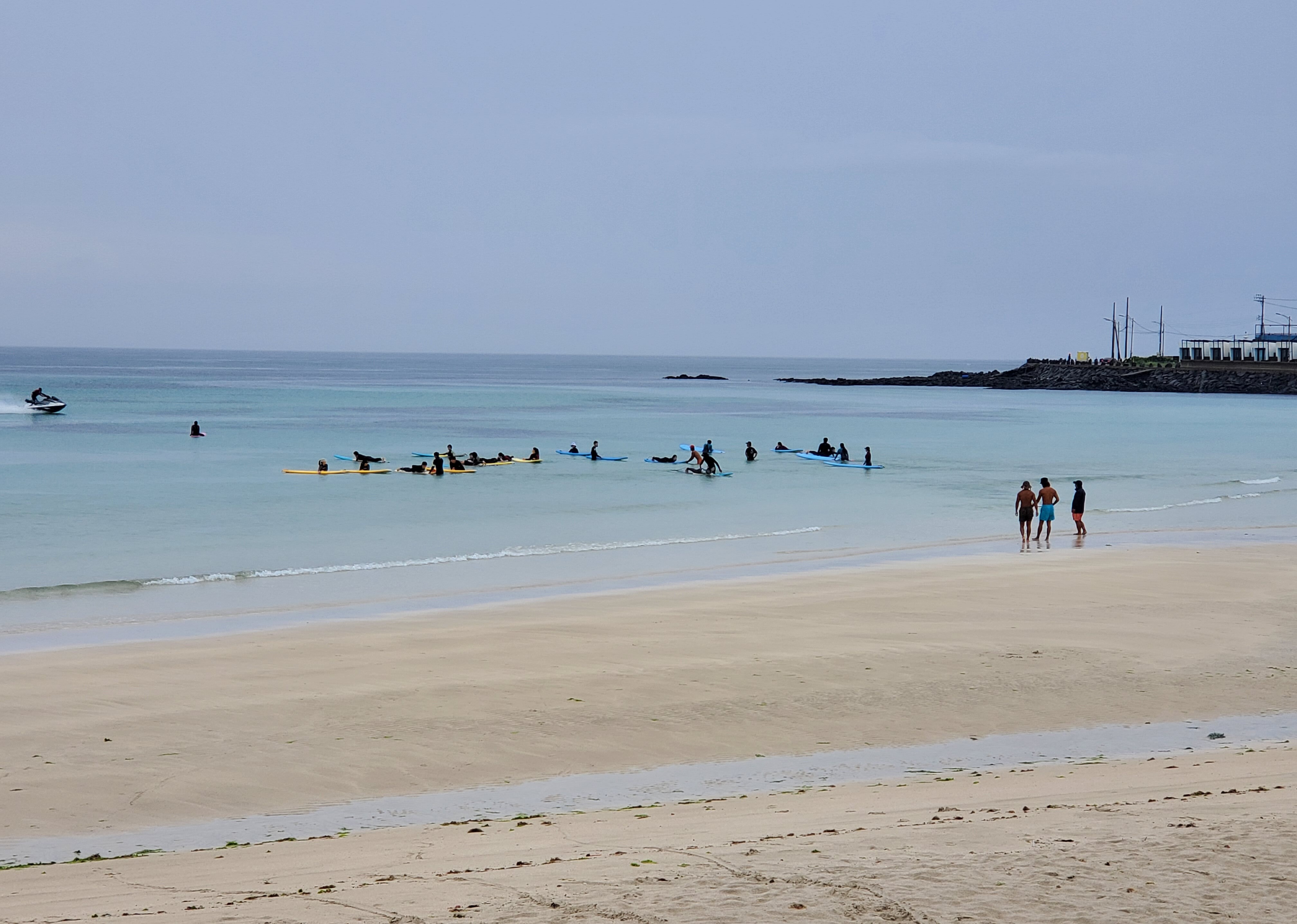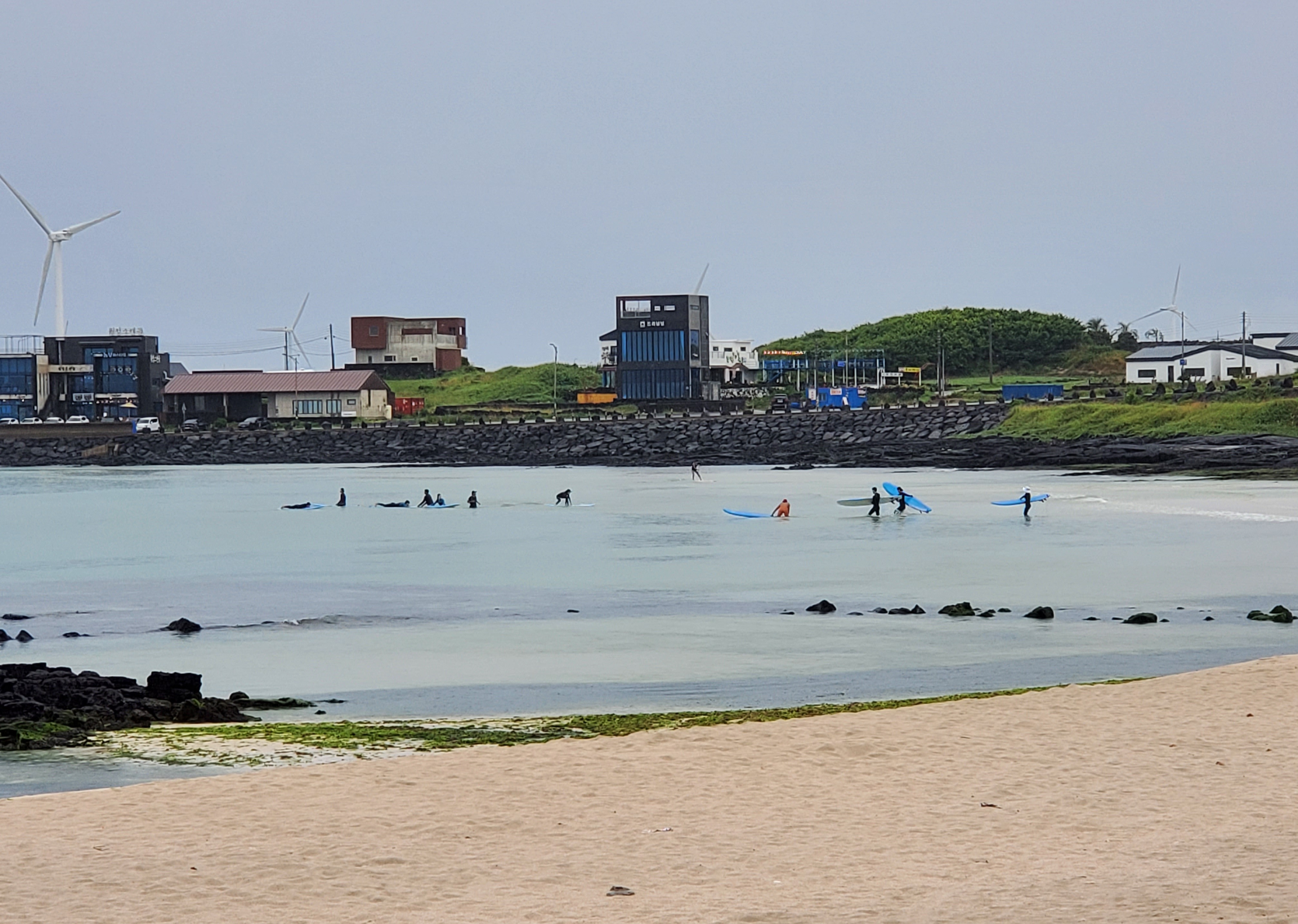 *젊은이들은 비가 오는데도 불구하고 이미 신나게 바다에서 서핑을 즐기고 있다. 마음 같아서는 나도 같이 풍