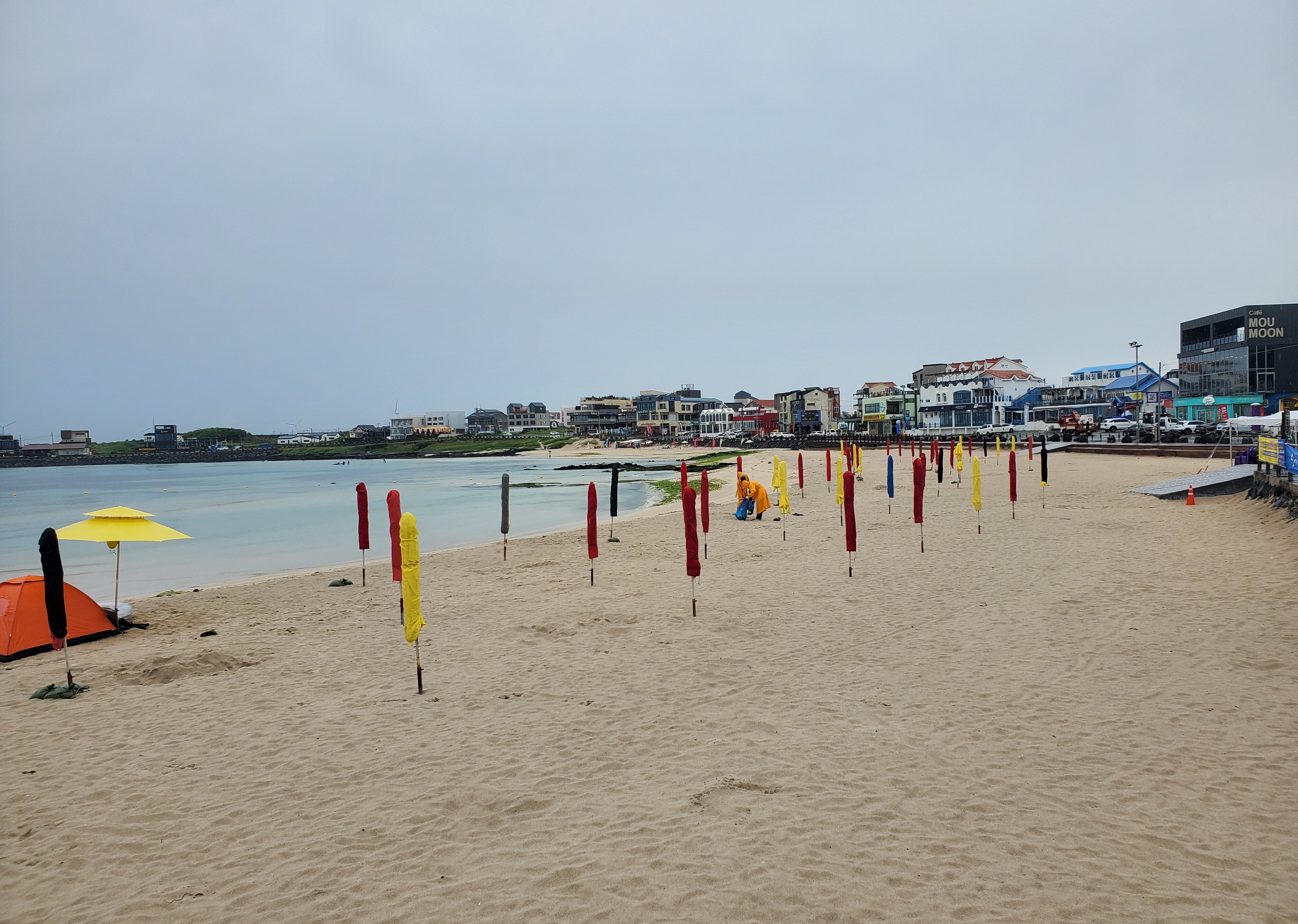 한다. 비록 비는 오락가락 하지만 해변은 역시 抒情的(서정적)이면서도 여유롭고 자유로운 느낌이다. 해변 한편