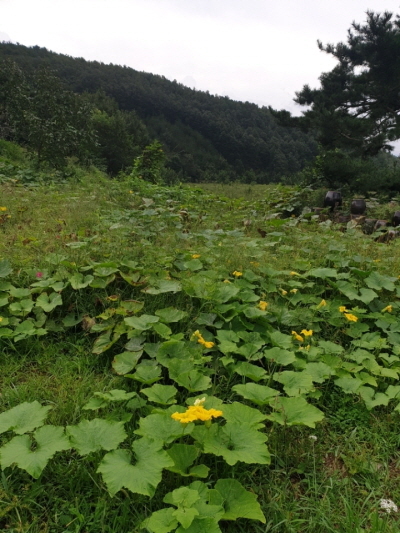 올해도 토종호박을 심었는데 줄기가 제법 뻗었네요.