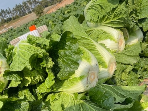 더 맛있게 키우기 위해 조금 작게 재배하는 항암배추예요.