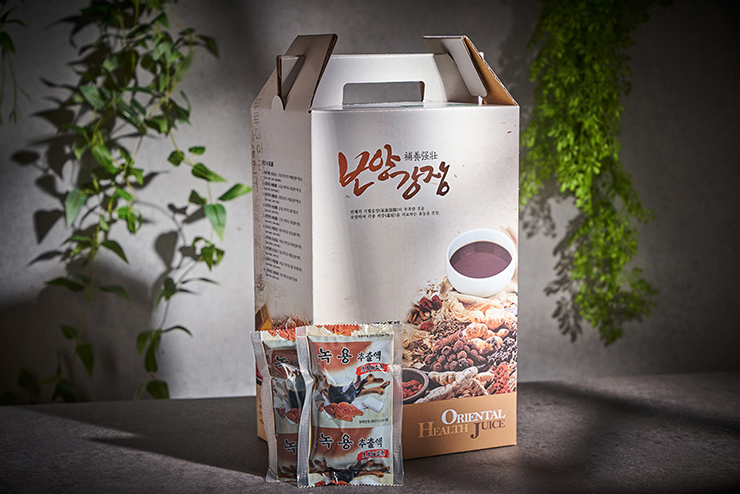 ● 원재료 : 녹용(뉴질랜드), 녹각(러시아), 사슴지육(국내산) 80%, 계피(중국), 감초(중국), 그 외 국내산 당귀, 작약, 천궁, 숙지 외 13종 20%