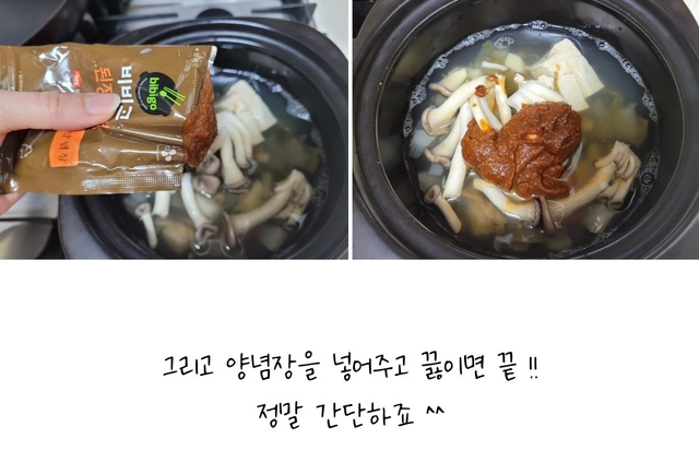 가정에서도 캠핑가실때도 간편하게 요 비비고 된장찌개 양념장만 준비해주시면 맛있는 된장찌개를 드실 수 있어요.