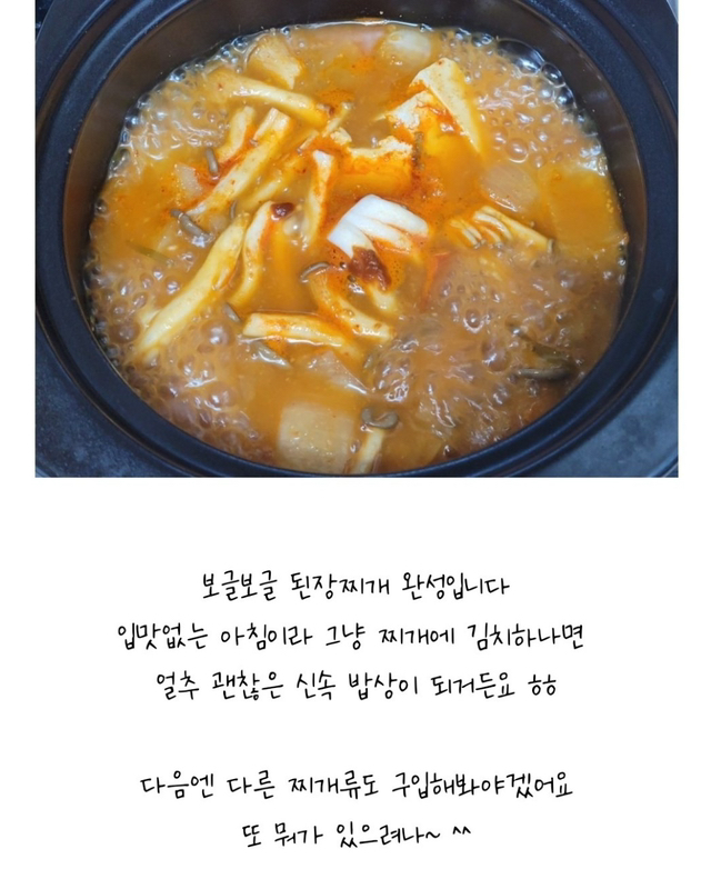깊고 구수한 한식메주된장과 조개, 멸치, 다시마를 넣어 깔끔함과 감칠맛을 느끼실 수 있어 어디에서든 맛있는 된장찌개를 드실 수 있답니다~