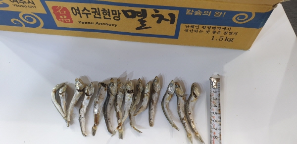 정치망멸치 박스에 담아서 들어왔어요