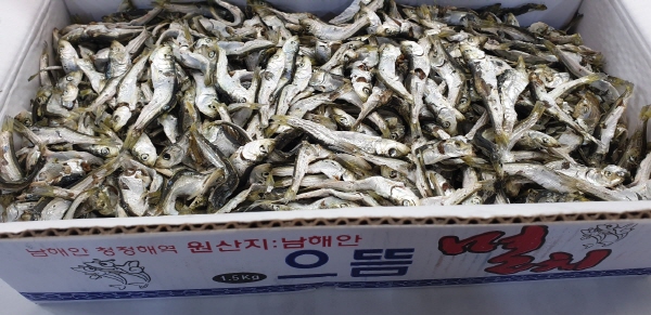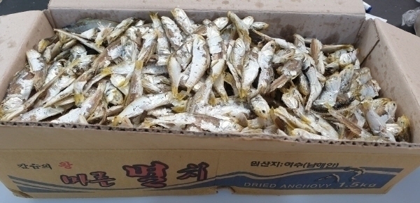 남해안산 상품의 멸치 1.5kg 한박스랍니다...고추장 찍어먹는 고주바 멸치랍니다.