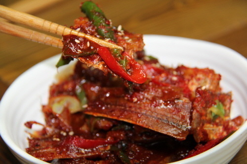 꼴뚜기를 살짝 씻은후 갖은 양념을 한후 조려서 드시면 아주 맛난 밥반찬이된답니다.