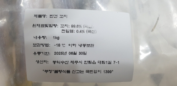 간혹 비늘이 벗겨지거나 그물에 걸리거나 건조중에 머리나 꼬리부분이 부서진것도 있을수답니다..