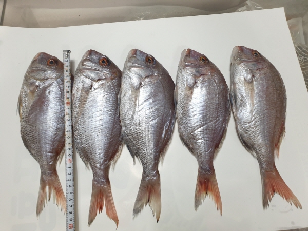 14.참돔(대,급냉동): 5마리, 27cm내외의 크기,마리중심 :26000원 (택비3000별도)