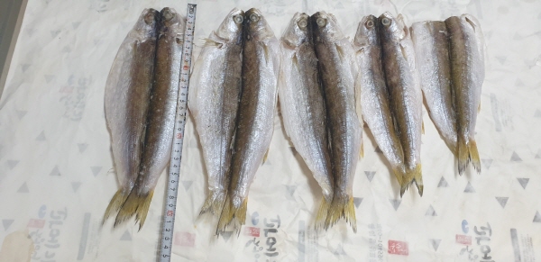 15. 반건조이면수(급냉동): 10마리,마리중심, 대략25cm정도의크기 : 17000 (택비3000별도) 새로건조작업,한정물량