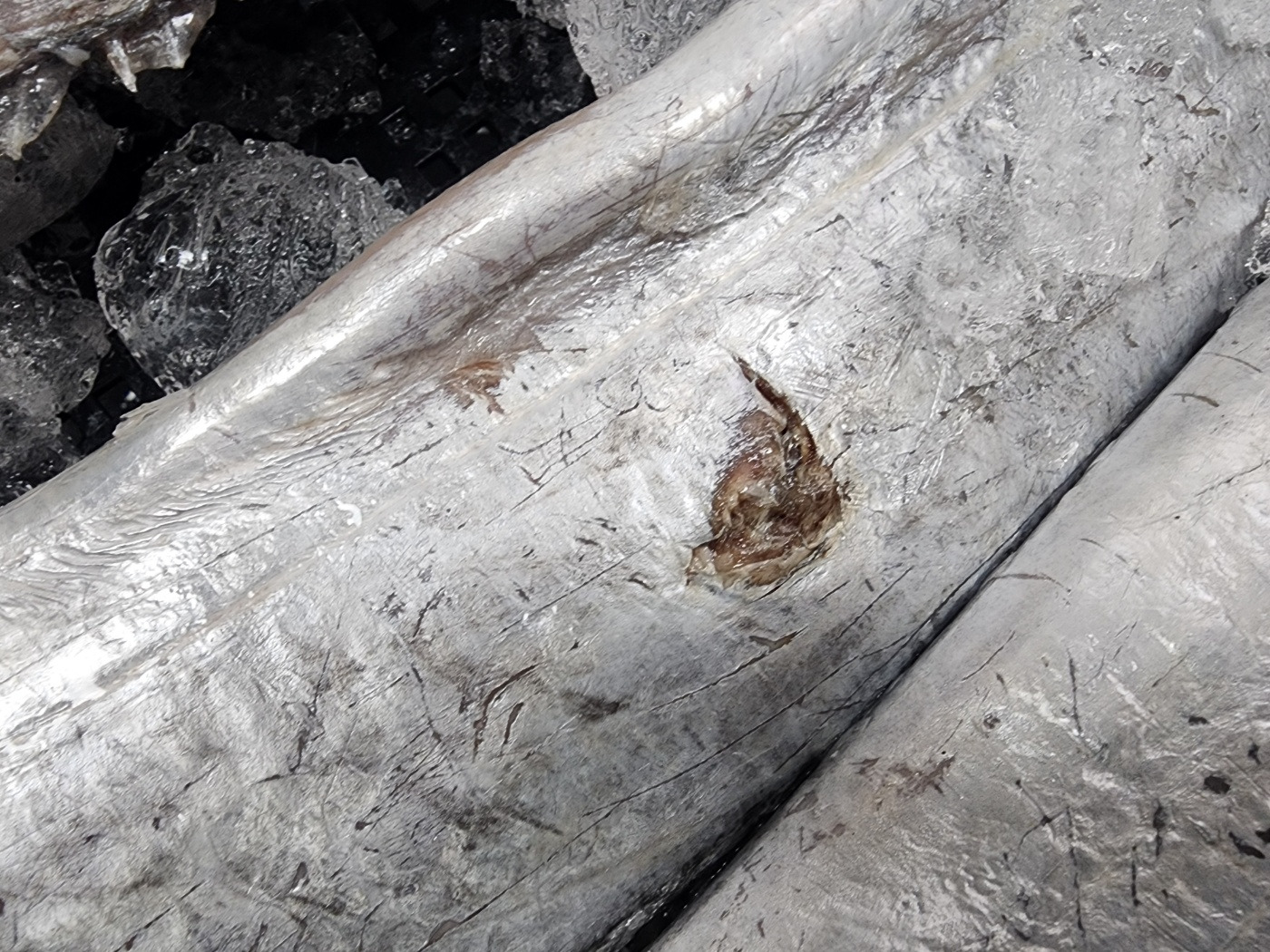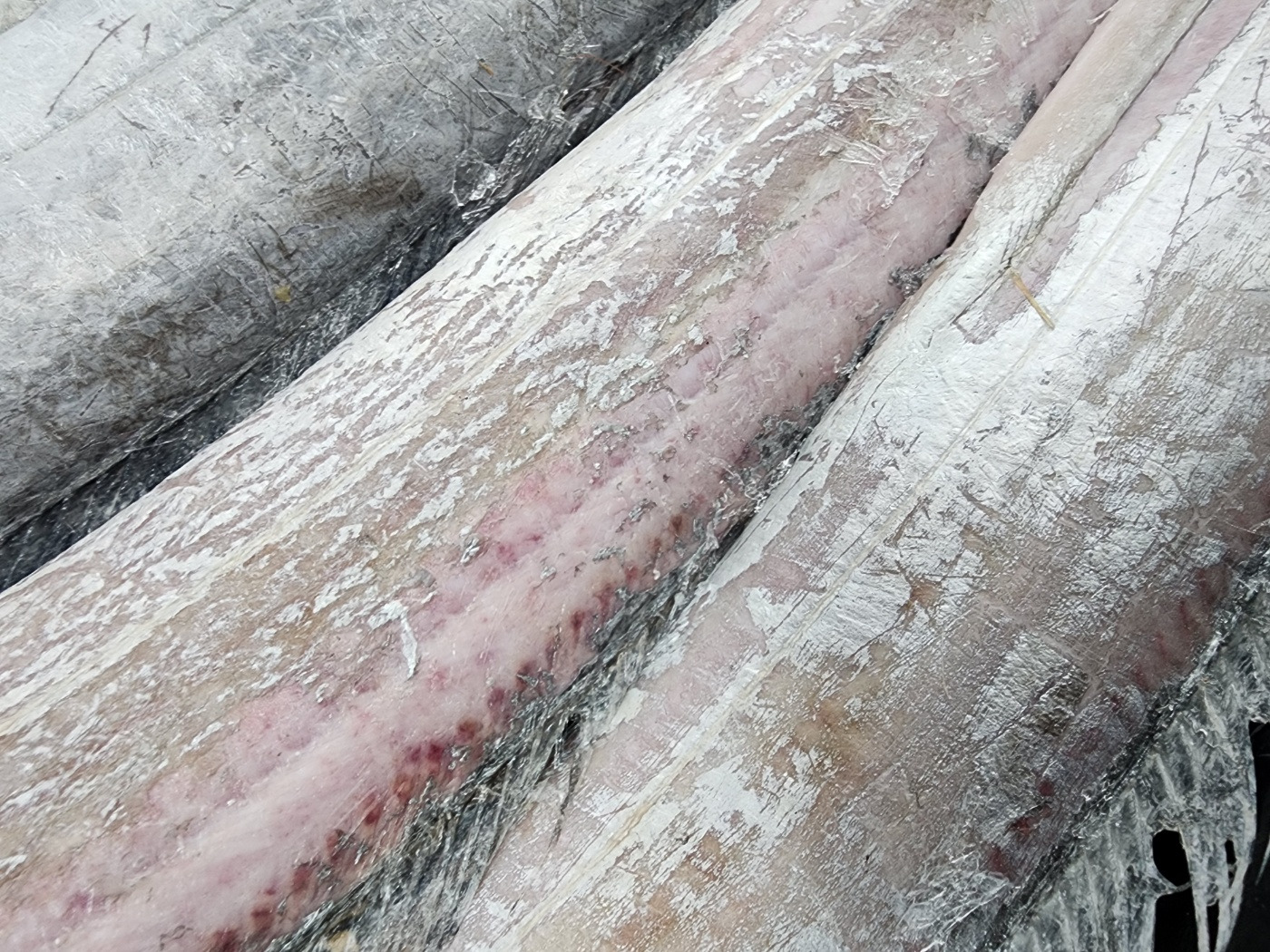먹갈치는 그물로 조업되기에 비늘이 벗겨지거나