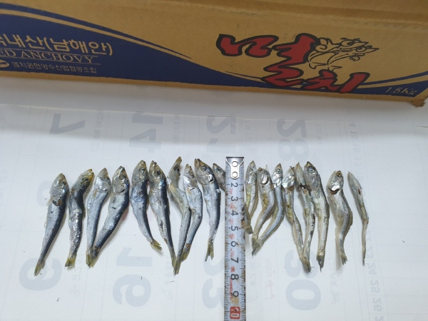 대략 6~9cm내외의 크기혼합 이랍니다..이번에 새로 들어온 솔치육수용은 고주바가 섞여있네요. 박스마다 다 달라요.