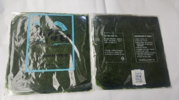 이렇게 포장해서 보내드려요..기존에 판매하던 돌김보다 두께감이 덜하답니다..