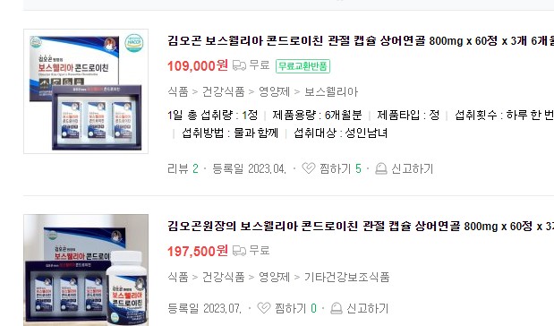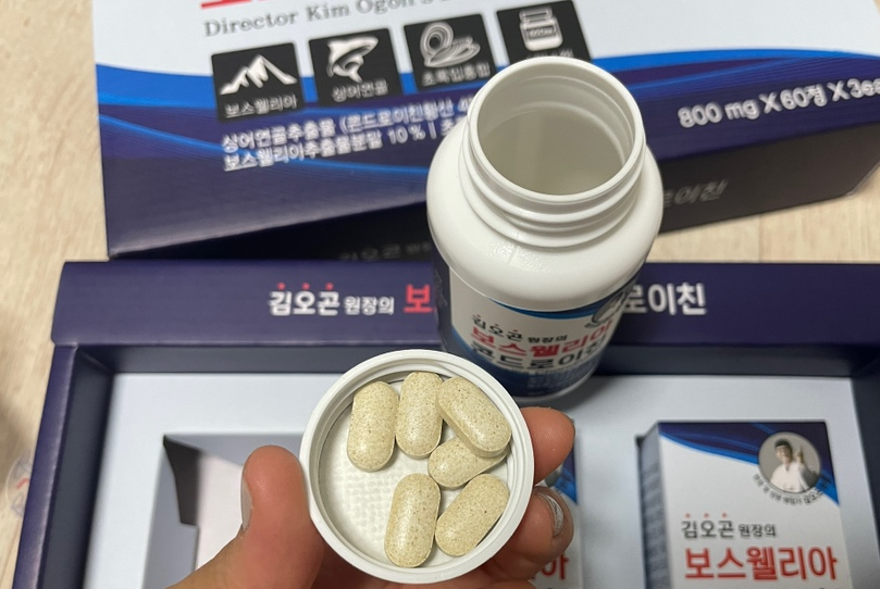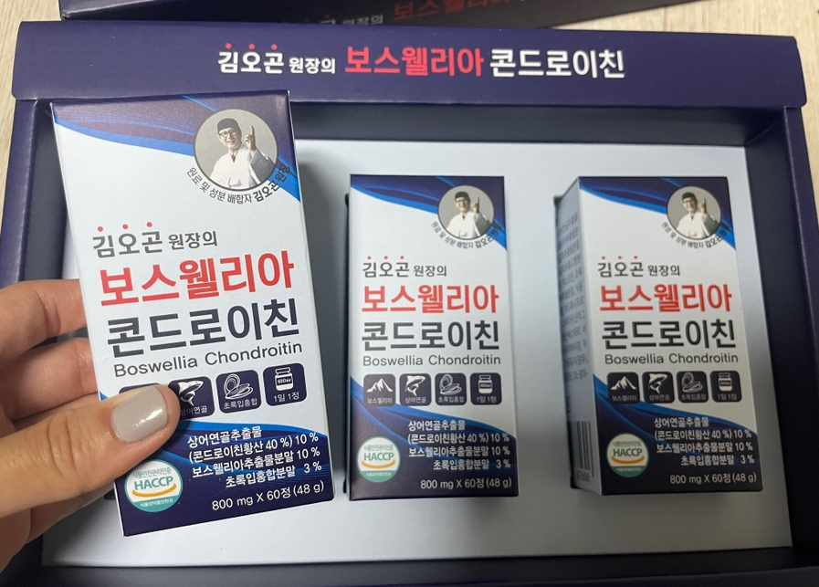 유명한의사명으로 나온품목이고 연골,관절에 좋은 보스웰리아+콘드로이친+초록입홍합 제품입니다