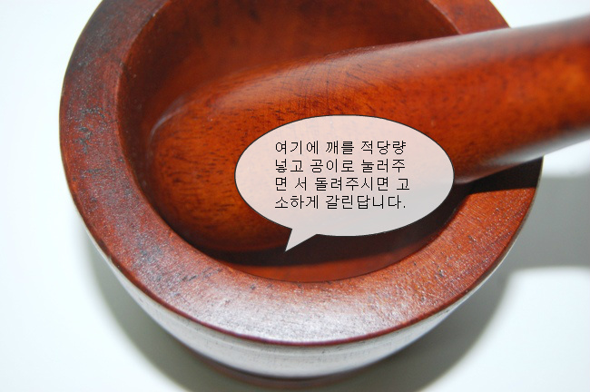 깨갈이는 깨를 넣고 찧는게 아니고 깨를 넣고 공이로 힘을 주어 돌리시면 고소한 깨가 갈아진답니다.