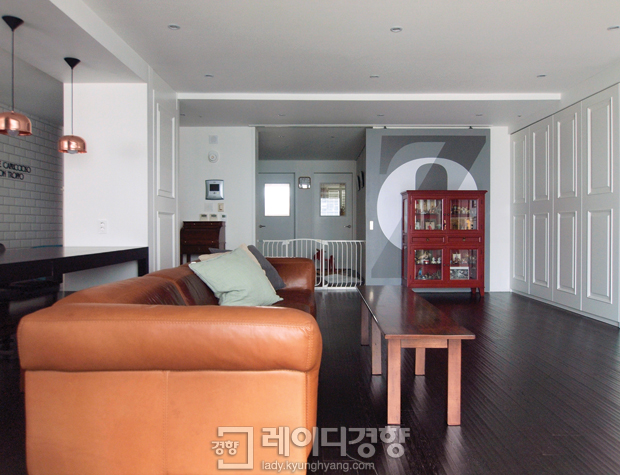 9 슬라이딩 도어를 설치해 자칫 지저분해 보일 수 있는 공간을 평소에 효과적으로 가리도록 했다. 슬라이딩 도어에는 레터링을 디자인해 재미를 더했다