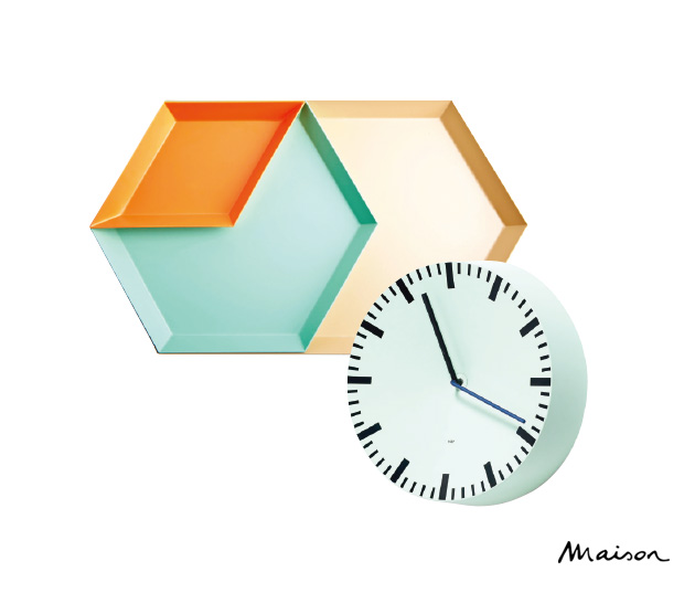 도형미가 느껴지는 트레이, 시계 등 아이템.