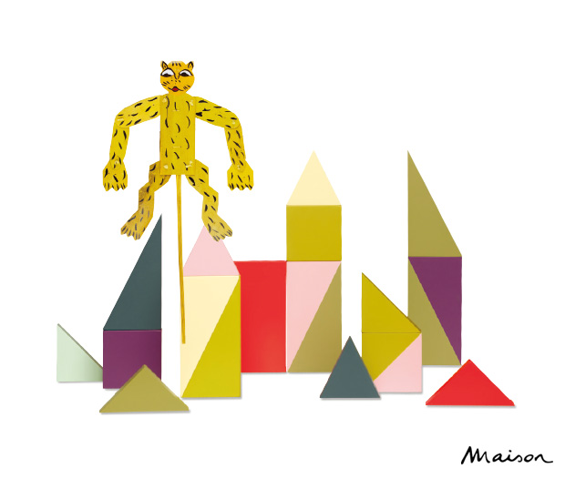도형 블록과 유쾌한 일러스트가 돋보이는 인형 등 오브제로 사용해도 좋은 장난감들.