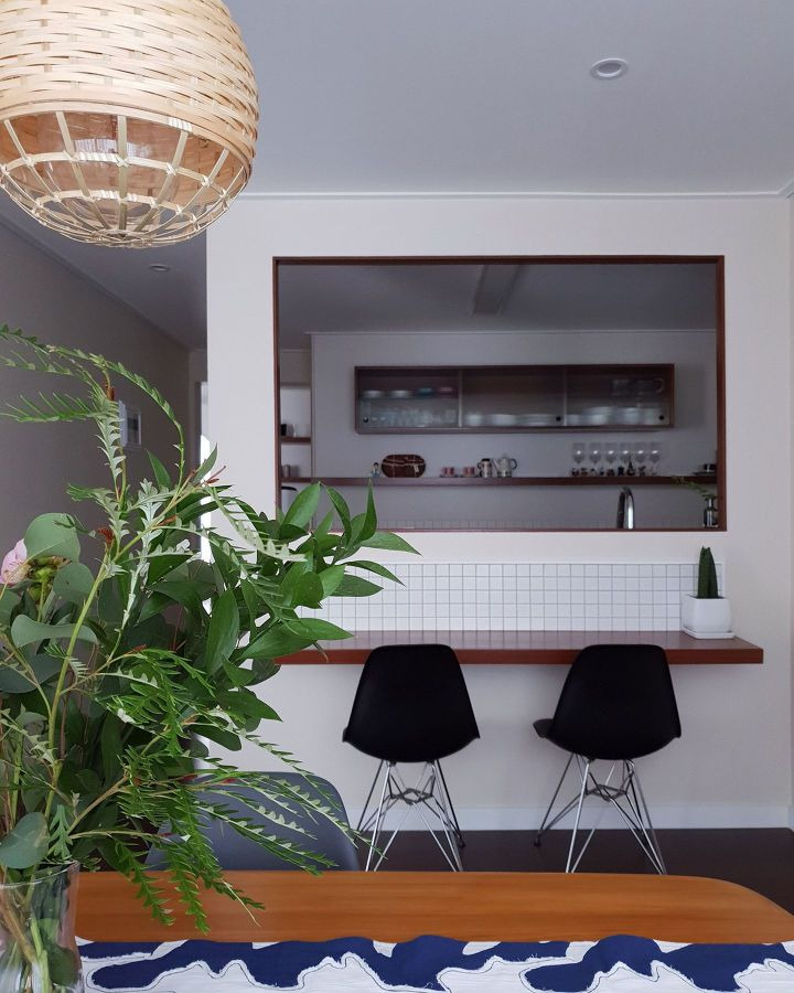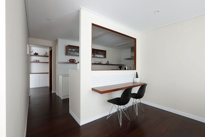 프레임이 있는 가벽을 만들어서 식당과 창문을 볼 수 있게 했어요.