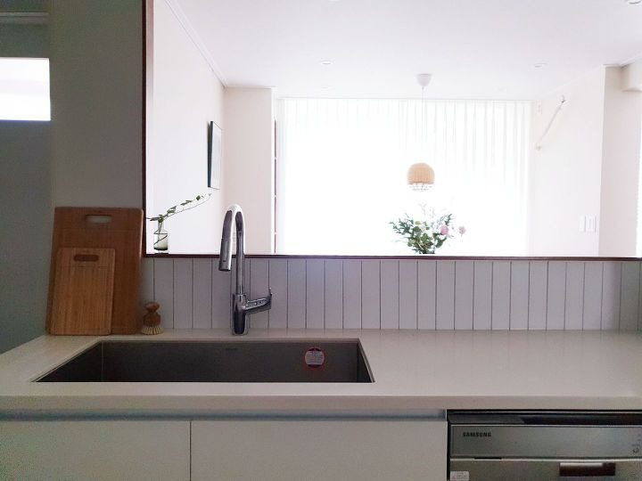 가벽의 테이블은 전적으로 설거지를 하는 사람을 위한 공간이에요. 저희 집에선 주로 남편이 설거지를 하는데, 남편이 설거지 하는 동안 마주보고 앉아 수다를 떨기 위해 만들었는데 최근에 식기세척기를 놓는 바람에 그럴 일이 많지 않네요. (ㅠㅠ)