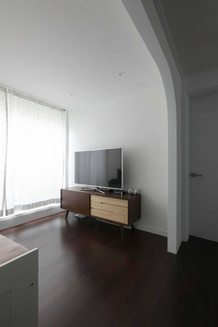 TV 같지 않은 TV (TV가 꺼졌을 때 액자로 쓸 수 있는)를 쓰고 TV장은 놓지 않기로 했어요.