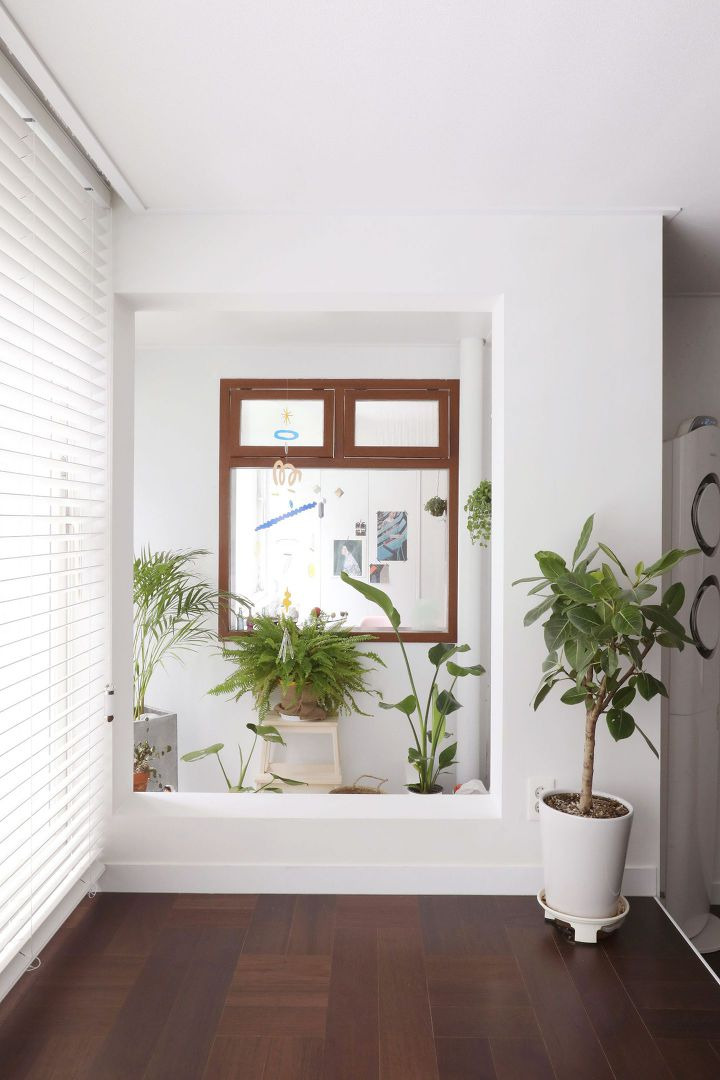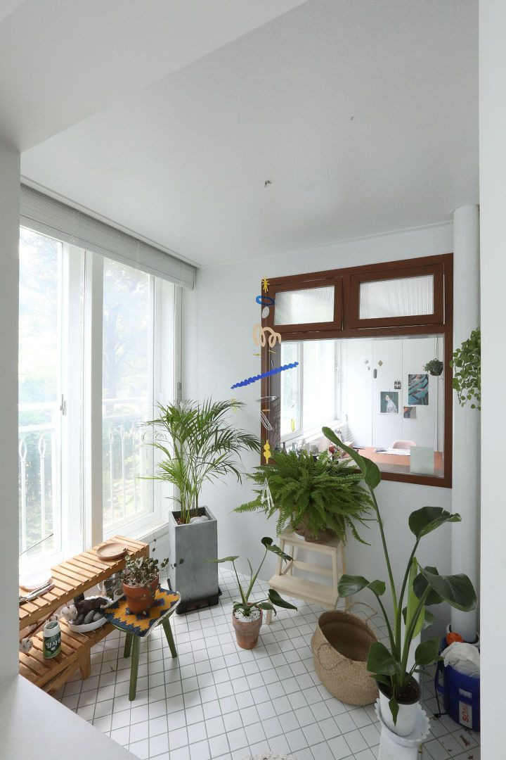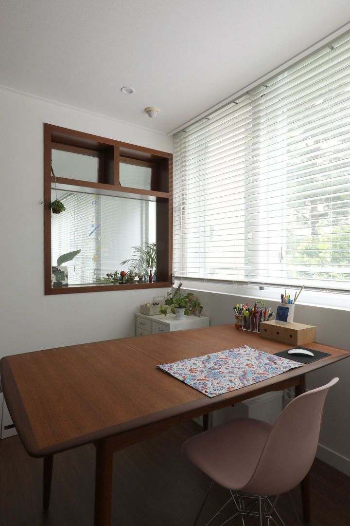 나무창 프레임 안에 식물이 가득한 예쁜 뷰를 만들수도 있고, 이 창 너머로 서재가 있어서