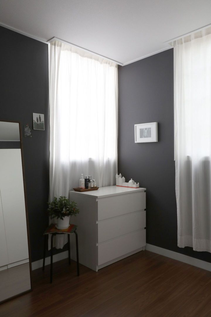 이 침실이 방 중 가장 작은 방이라 침대 외 다른 가구를 둘 자리가 없더라고요. 침대에 누웠을 때 시선이 닿는 곳에 예쁜 것이 있었으면 해서 제일 먼저 포스터를 달고 그 뒤로 하나하나 추가했어요.