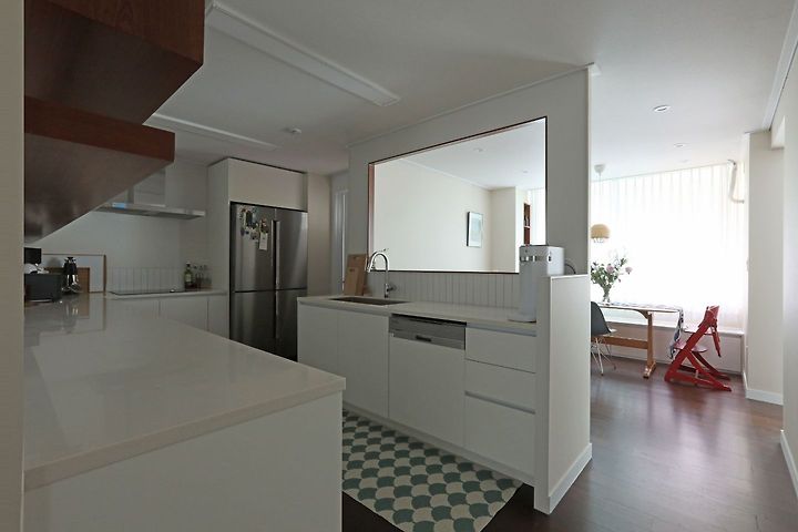 이번엔 거실 뒤 주방공간을 소개할게요. 식당/주방 공간은 원래 거실과 통으로 뚫려있었고,