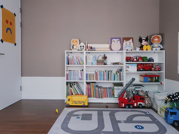 그래서 혼자 놀아도 다칠 위험이 없도록 안전에 가장 신경썼어요. 높은 가구는 두지 않고 책장은 벽에 고정했고, 모든 장난감과 책은 아이 눈높이에 맞춰서 스스로 꺼낼 수 있도록 했습니다.
