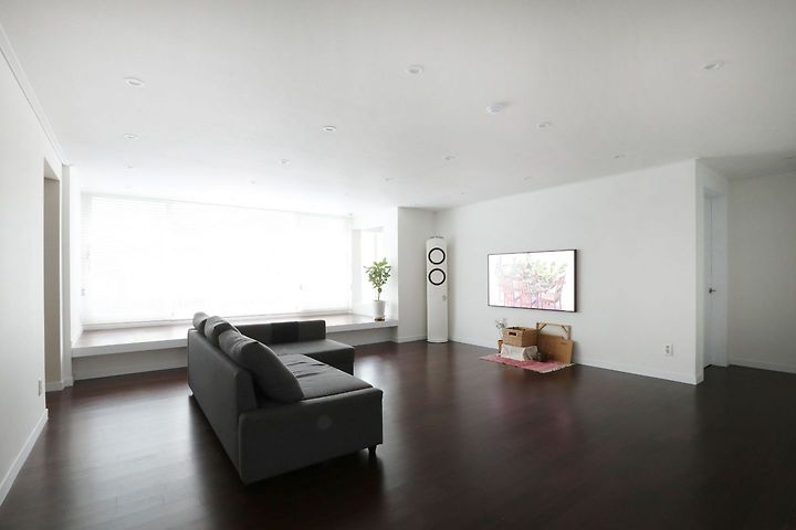 그리고 직접 보시는 분들도 거의 눈치 못 채시는 비밀이 하나 있는데요, 올 화이트인 거실 벽과 달리 아이보리 색상으로 도배/도장했어요.