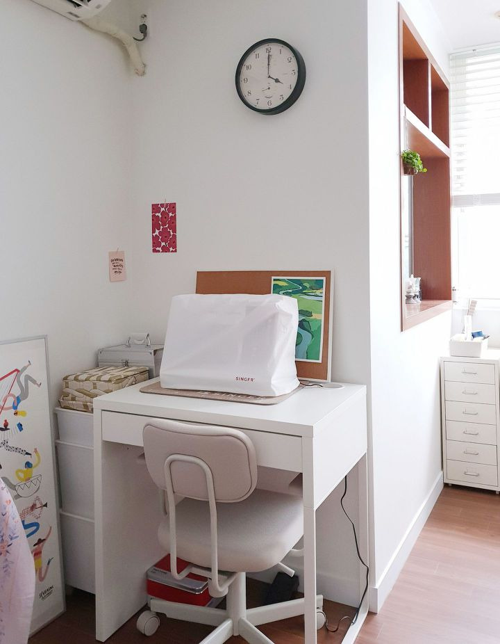 한쪽엔 재봉틀 책상을 따로 뒀어요.
