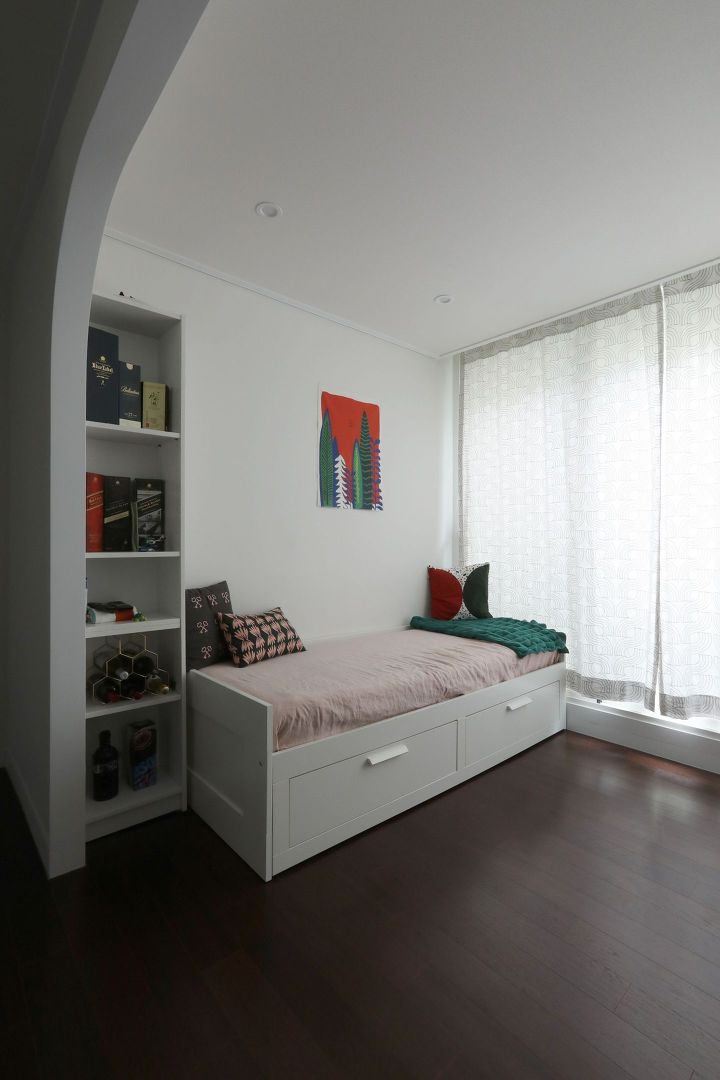 원래는 운동기구를 놓고 운동방으로 쓸까 했는데 저희 생활패턴을 생각해보니 그렇게 하면 죽은 공간이 될 게 분명했죠. 운동을 하겠다고 우기던 저희에게 인테리어 업체에서 아주 조심스럽게 다른 용도를 제안주셨답니다. 다행이죠ㅎㅎ