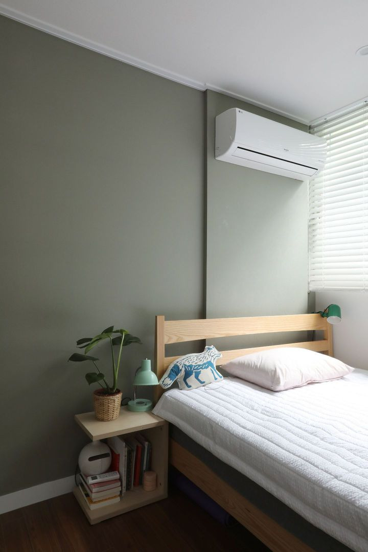 종일 고생하시는 엄마가 편히 쉬실 수 있도록 아늑한 공간을 만들고 싶었어요. 포인트벽의 올리브 컬러도 엄마가 좋아하시는 색깔입니다.