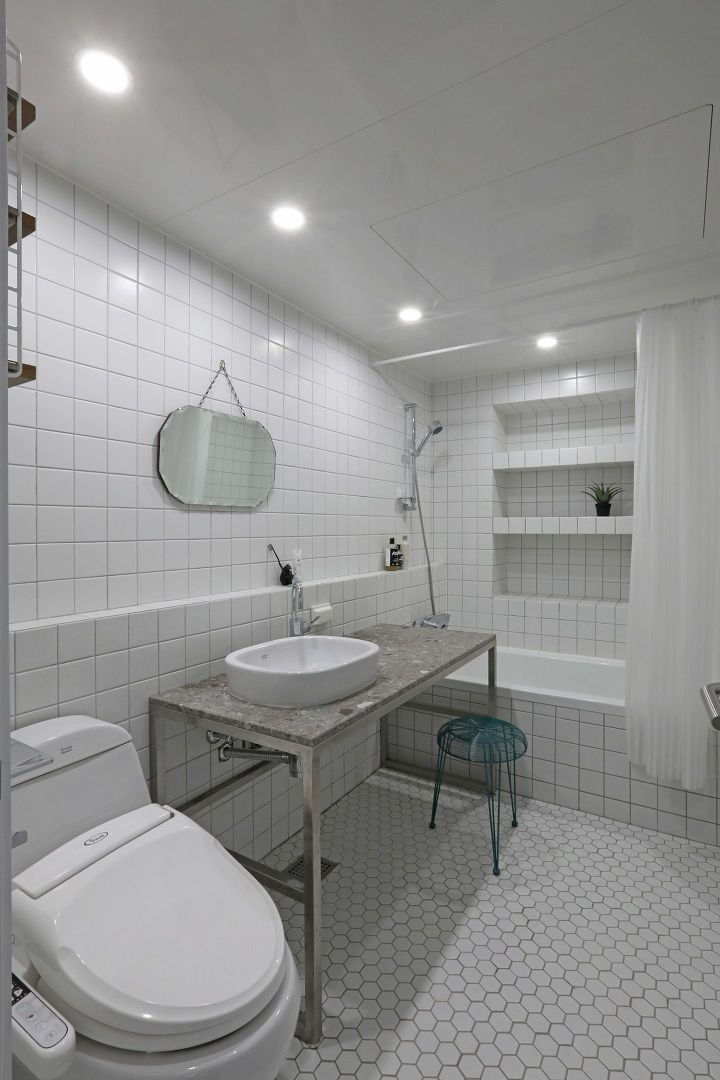 화장실은 아무리 검색을 해도 마음에 드는 사례를 못 찾아서 끝까지 결정을 못 하고 고민한 공간이에요. 사실 화장실은 정해진 포맷이 너무나 명확하고 큰 돈을 들이지 않는 한 비슷비슷한 것들이 들어가기에 독특한 공간을 만들기 어렵잖아요.