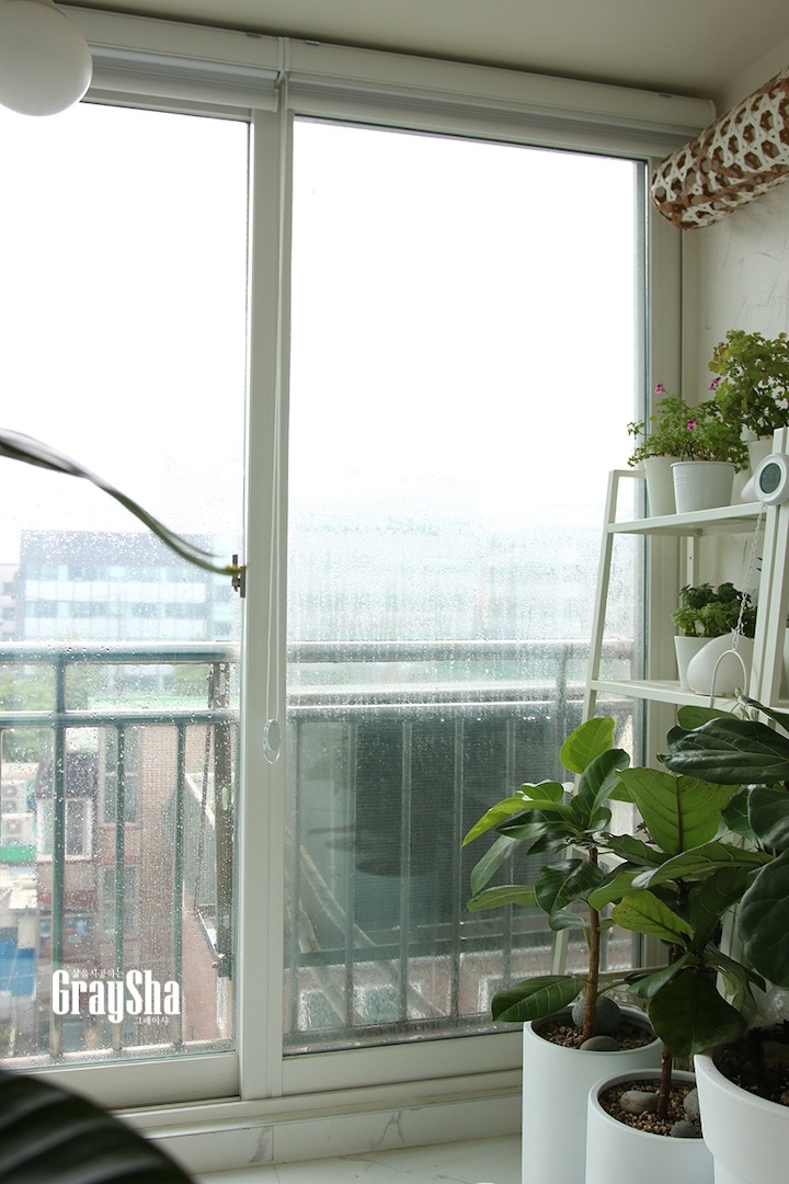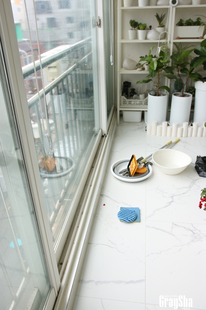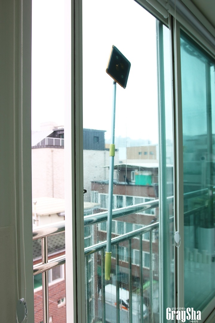 인테리어부터 살림팁까지 다양한 노하우를 공유하고 있는 그레이샤입니다 제가 1년에 한 번 하는 것이 있는데요, 바로 아파트 베란다 유리창 외부 쪽을 닦는 거랍니다! 열어 놓는 것도 환기 시키는 것도 좋아하다 보니 그 부분을 신경 쓰는 편이거든요. 아무래도 지난 봄 황사와 미세먼지로 창문이 지저분할텐데 요즘 비가 많이 와서 이럴 때 창문 청소 하기 딱 좋을 것 같아요.