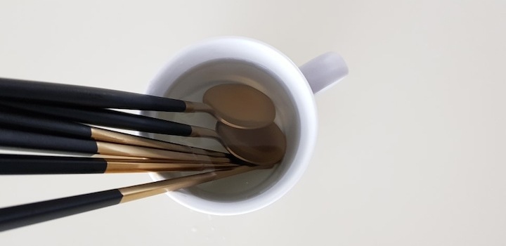 저는 식사 후 사용했던 컵에 식초 탄 물과 수저를 넣어뒀다가 설거지할 때 같이 헹구는 편이에요.