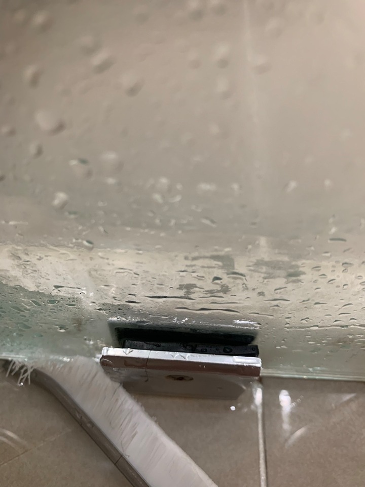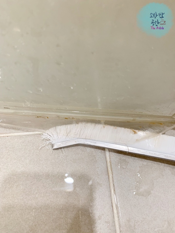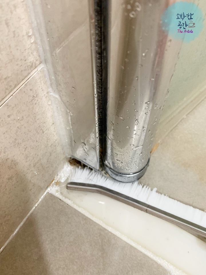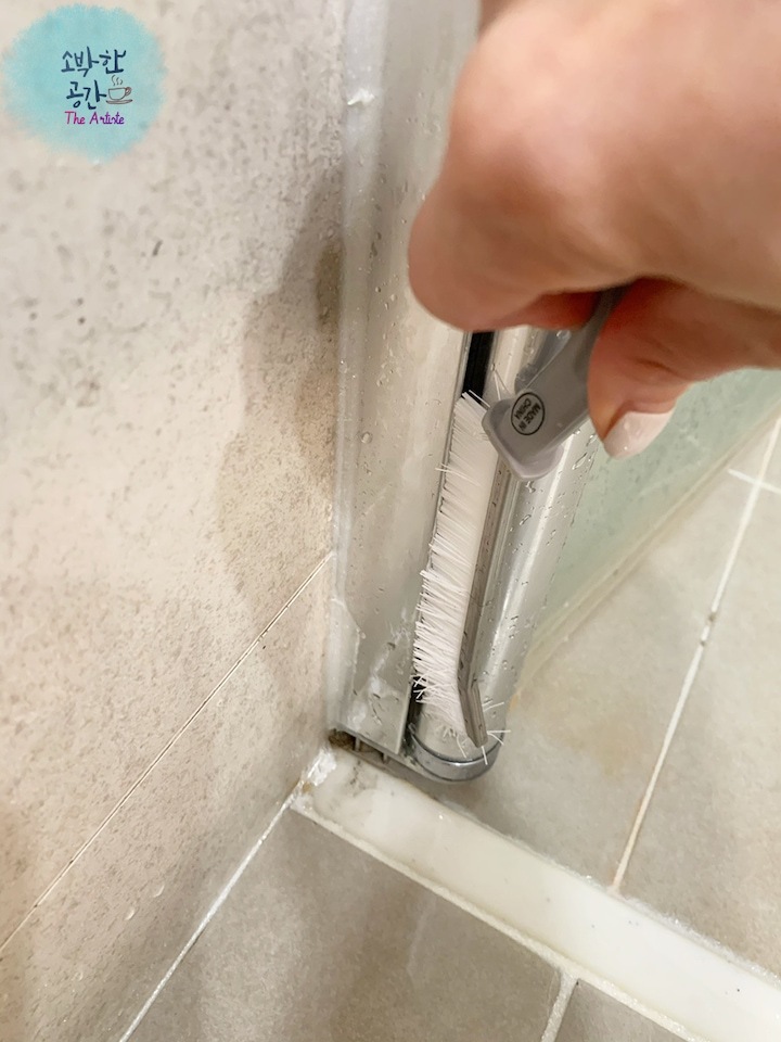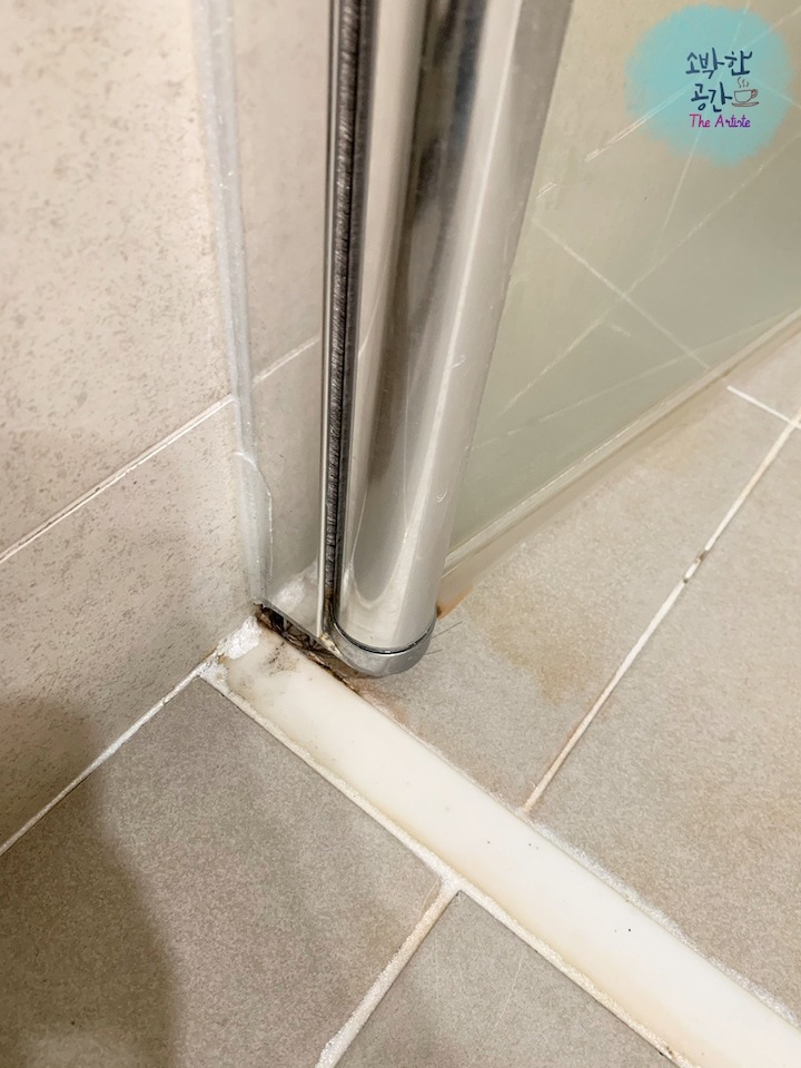 그리고 샤워부스 유리 아래 고무에 낀 곰팡이도 제거해 주세요.