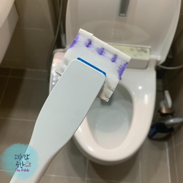 화장실 청소솔은 다이소에서 구입했어요. 넓고 얇은 데다 빳빳하게 힘이 있어서 정말 최적화된 솔이에요.
