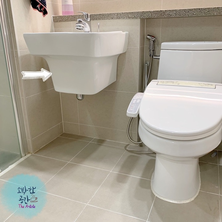 세면대 청소도 할 거예요. 우리는 샤워 중 트리트먼트 하는 시간에 모든 청소를 하기 때문에 너무 힘들여서 하지 않아요! 요령껏!
