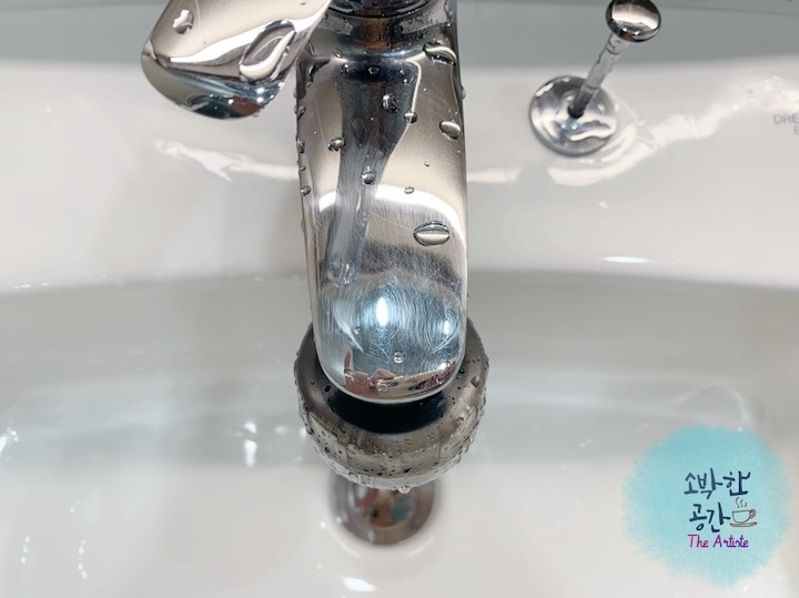 세면대는 수전(수도꼭지) 주변 틈새에 물때가 잘 껴요. 매일 아침저녁으로 사용하니 어쩔 수 없어요. 청소해보신 분들은 아시겠지만 세면대 청소를 가장 쉽게 하는 건 매직 스펀지로 그냥 한번 문질러 주는 것!