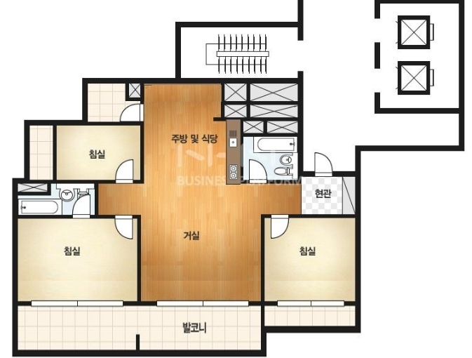 그렇게 이사 온 두 번째 신혼집은 3bay 구조의 10년이 훌쩍 넘은 아파트에요. 게다가 모든 방이 베란다를 가지고 있는 확장이 되지 않은 집이었어요. 저는 베란다가 많은 점도 확 꽂혀버린 계기이긴 하지만요. (포털사이트에 등록된 도면을 가지고 오긴 했는데, 실제랑은 조금 다른 구조&비율이네요..!)
