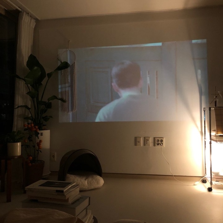 침대 맞은편은 항상 비워둬요, 잠들기 전 영화나 재밌는 프로그램이 보고 싶을 땐 빔으로 홈 시네마를 열어야 하니까요 :)