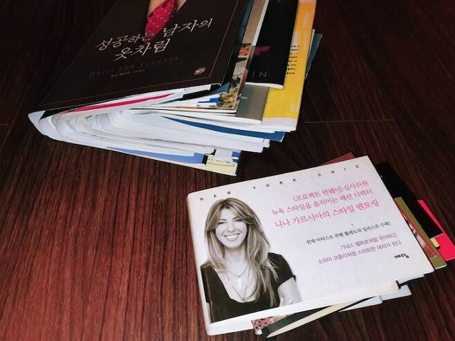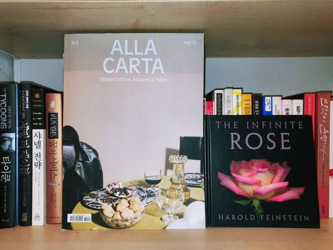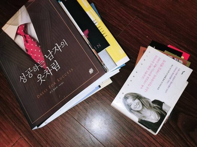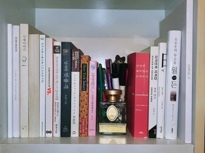 튀는 크기의 책이 있거나 정리해도 산만해 보이는 부분이 있다면 표지가 예쁜 매거진이나 디자인 서적으로 가리는 것도 방법이에요.